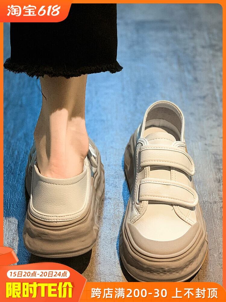 小さな白い靴の女性の 2023 春の新ファッションベルクロ学生軽量厚底滑り止め快適カジュアルスニーカー シューズ ホワイト スプリング 春物 jxjxf95378936440