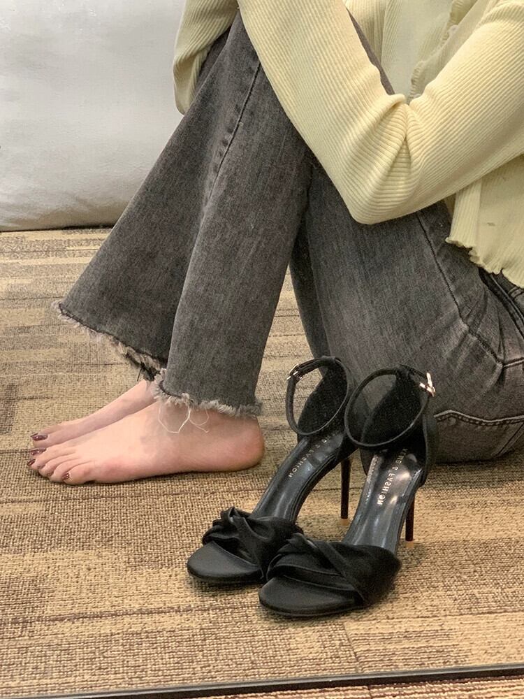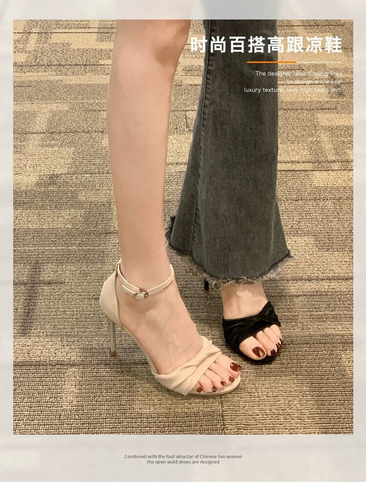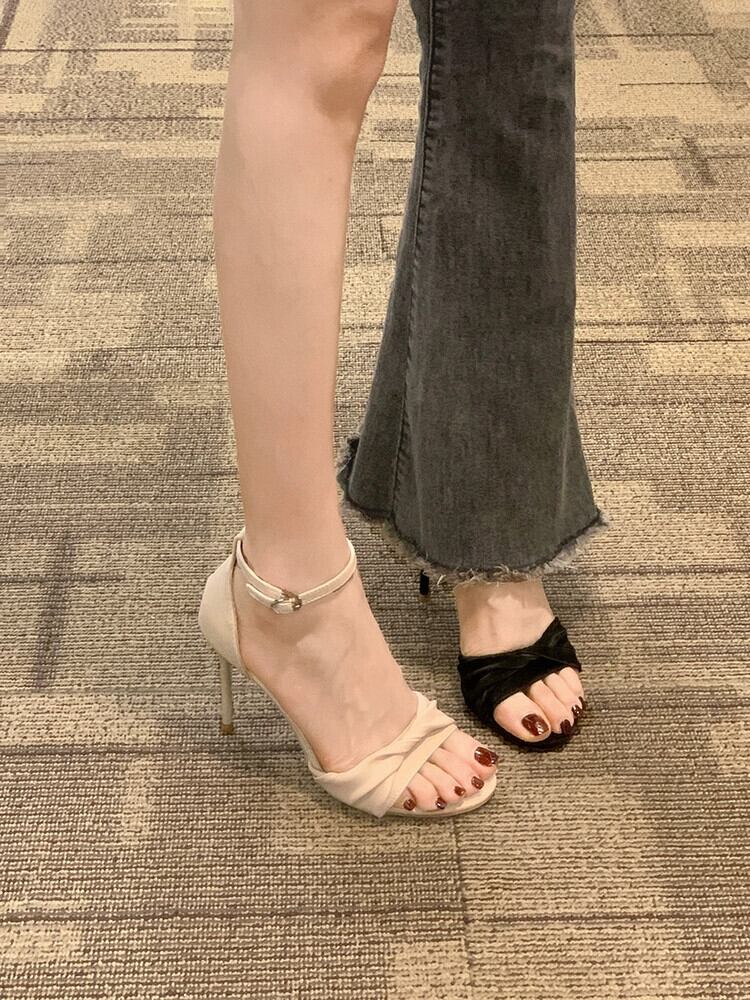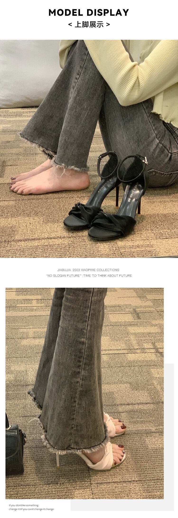 Jiabu 偽スティレットサンダル女性の 2023 春の新作オールマッチレトロフレンチスタイルの小さな一言ハイヒールの靴潮 シューズ スプリング 春物 jxjxf12459451610