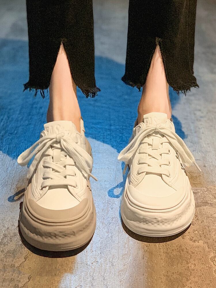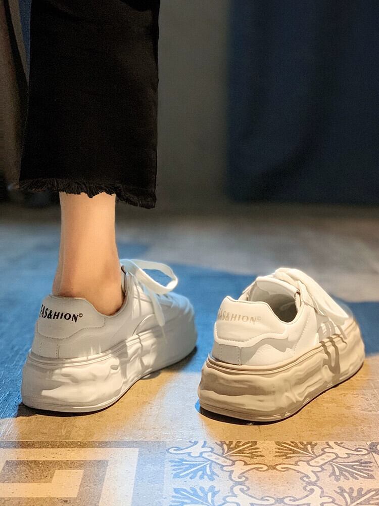 小さな白い靴の女性の 2023 春の新ストリート撮影ファッションオールマッチ学生快適な厚底滑り止めライトカジュアルシューズ ホワイト スプリング 春物 jxjxf47466179901