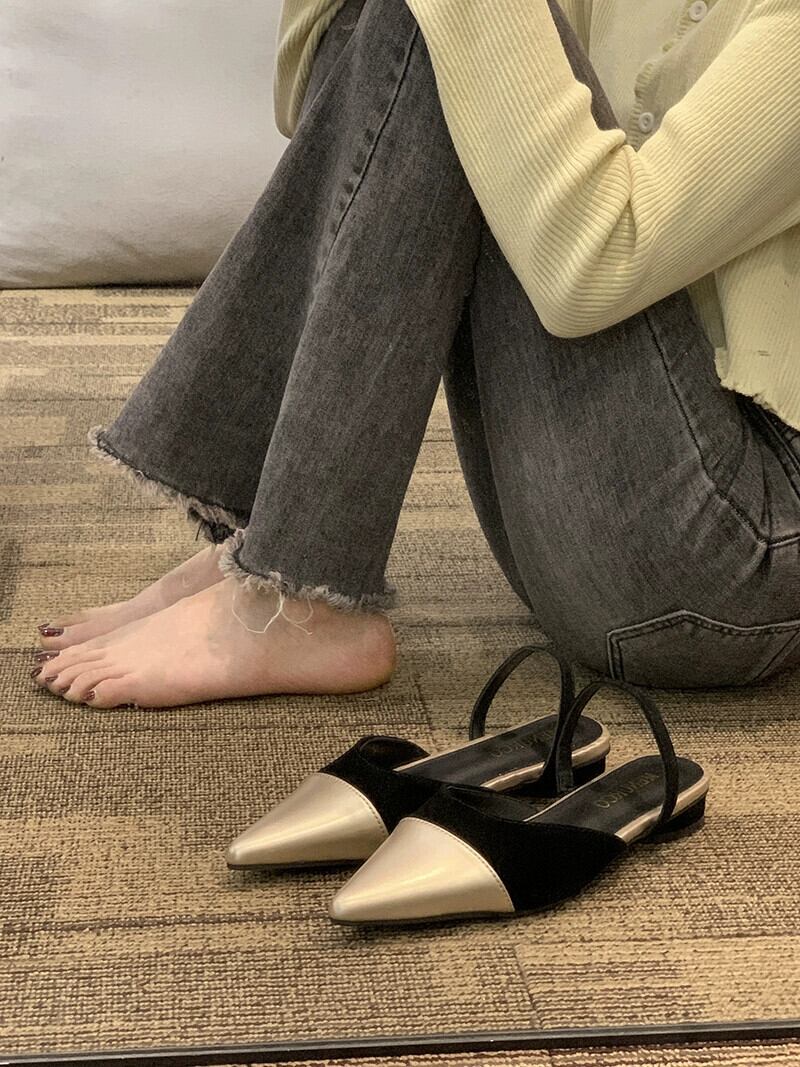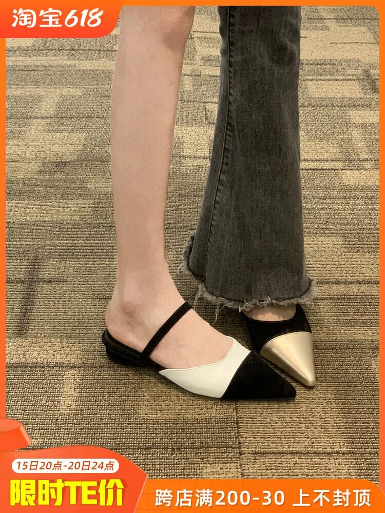 怠惰なハーフスリッパフレンチスタイル春 2023 新しいファッションオールマッチレトロアインスタイルレディースローヒールサンダルとスリッパトレンド ミュール 靴 シューズ スプリング 春物 jxjxf50614035844
