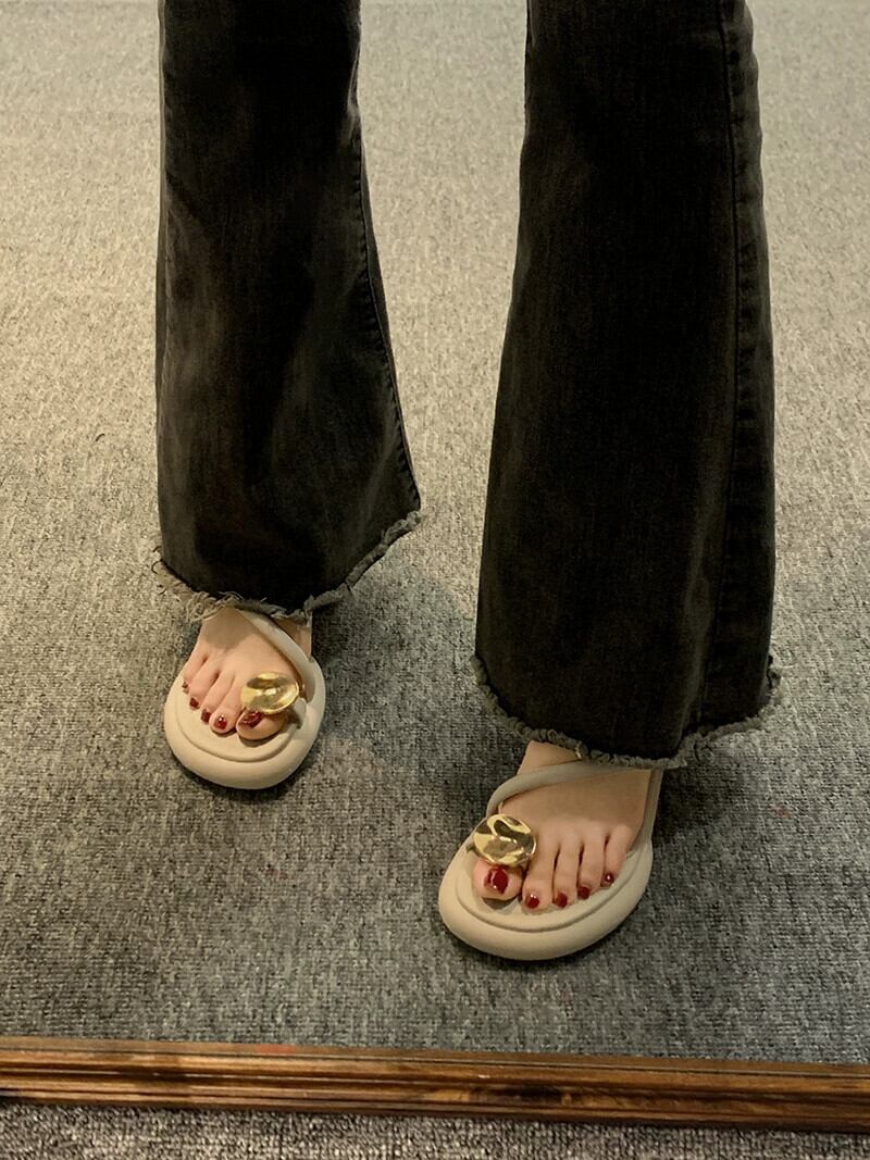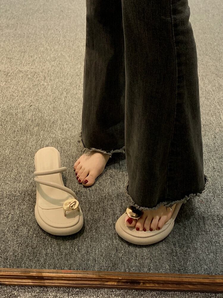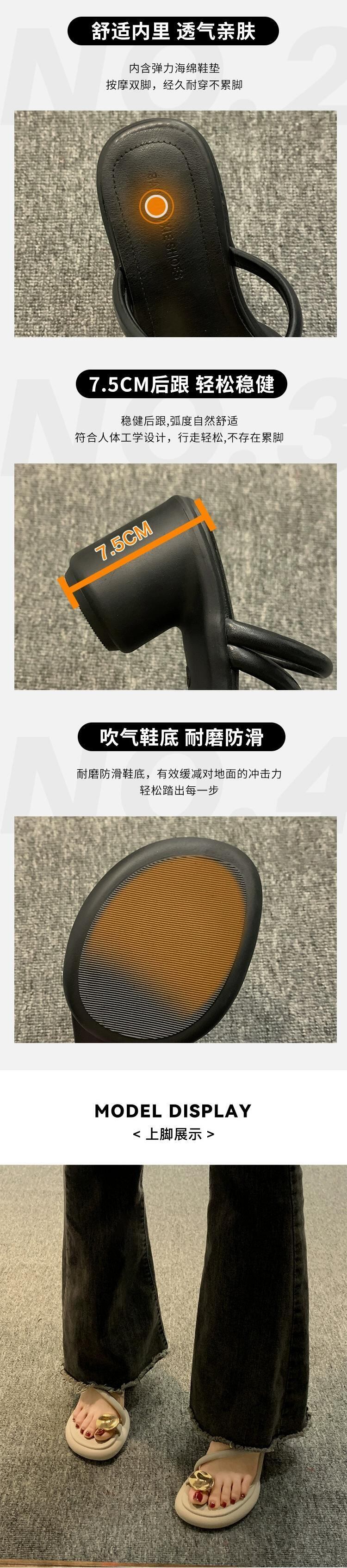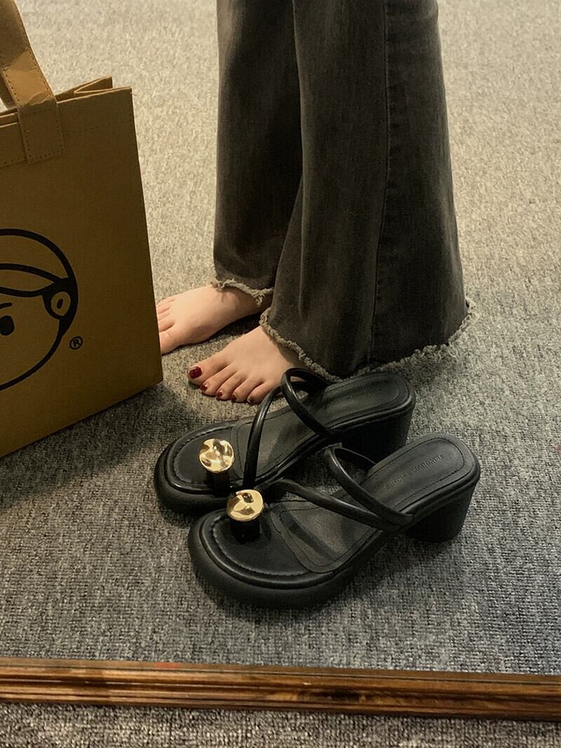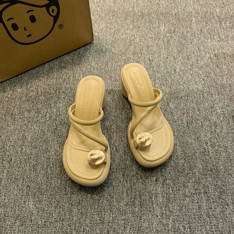 セットトゥスリッパレディースアウターウェア 2023 春の新ファッションオールマッチメタル小さなハイヒールレトロサンダルとスリッパ 靴 シューズ ミュール スプリング 春物 jxjxf96476849505