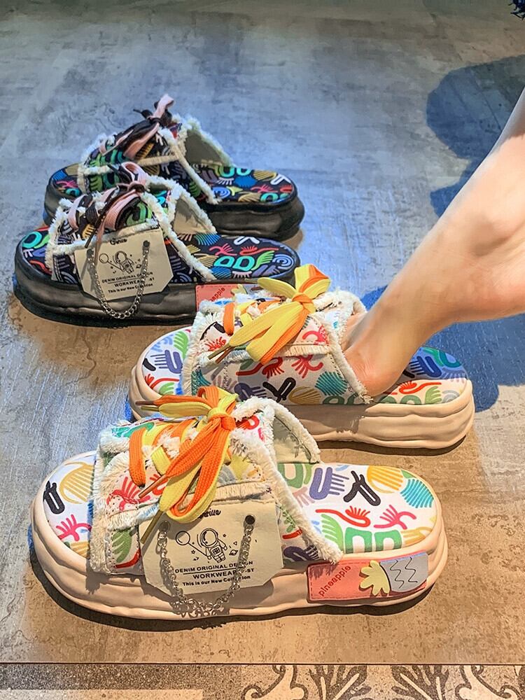 レディーススリッパ 2023 春の新スタイルオールマッチ小型厚底滑り止めカジュアルビーチサンダルとスリッパ ミュール 靴 シューズ スプリング 春物 jxjxf68885734618