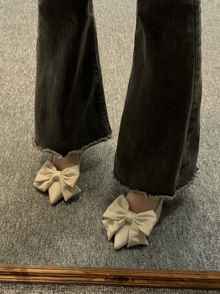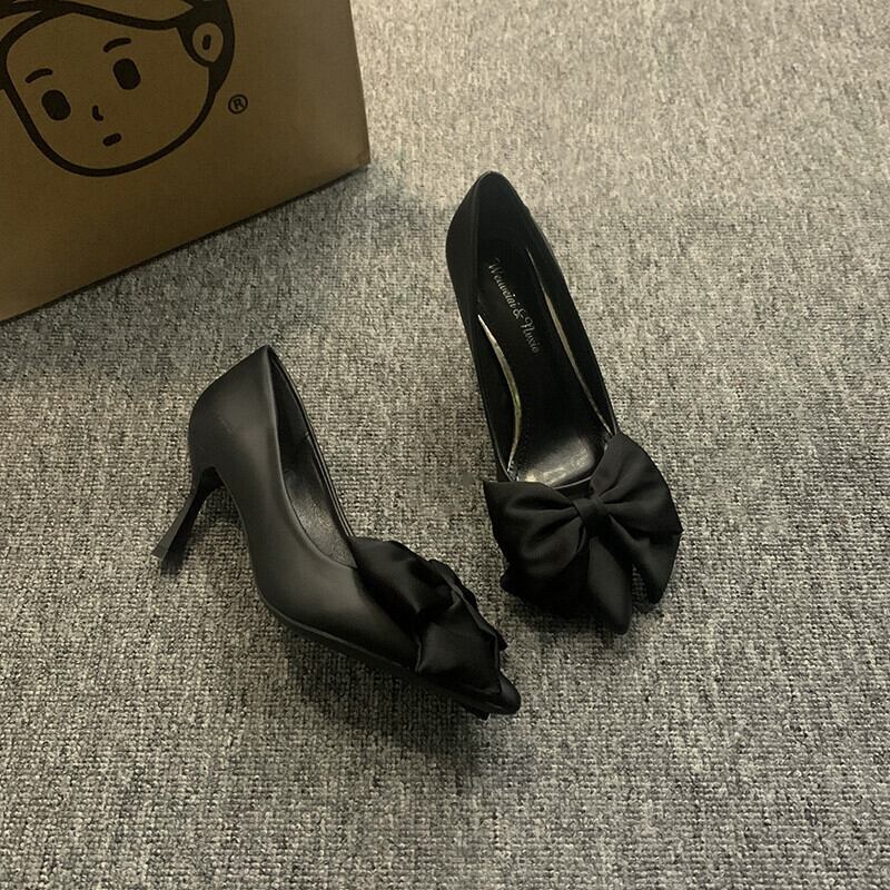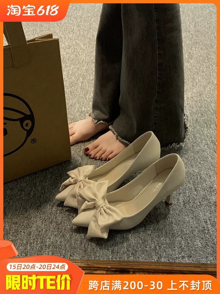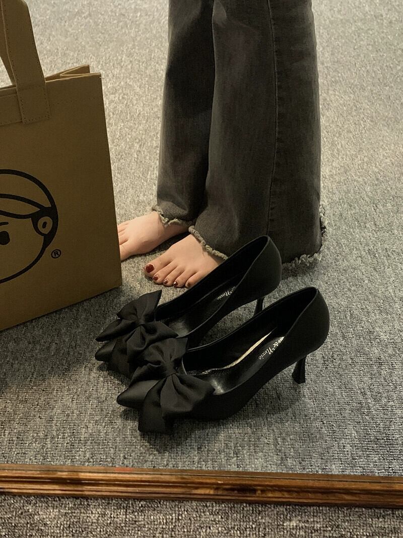 ポインテッドトゥハイヒールシューズレディース 2023 春の新作フランスオールマッチ優しいファッションちょう結び浅口スティレットシューズ 靴 リボン スプリング 春物 jxjxf87949928509