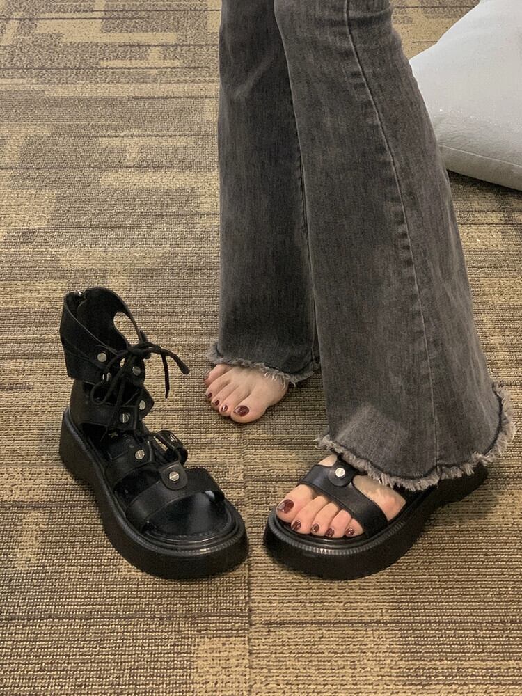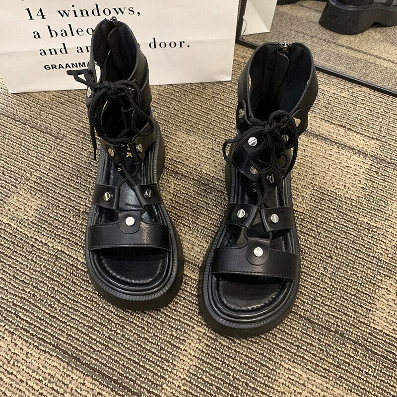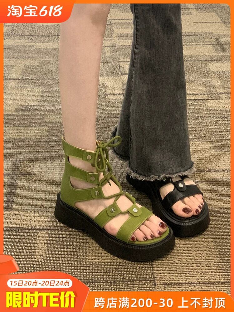 ローマサンダル女性の 2023 春の新ファッションオールマッチ小さなレトロマフィン厚底ノンスリップビーチシューズ 靴 スプリング 春物 jxjxf79128725273