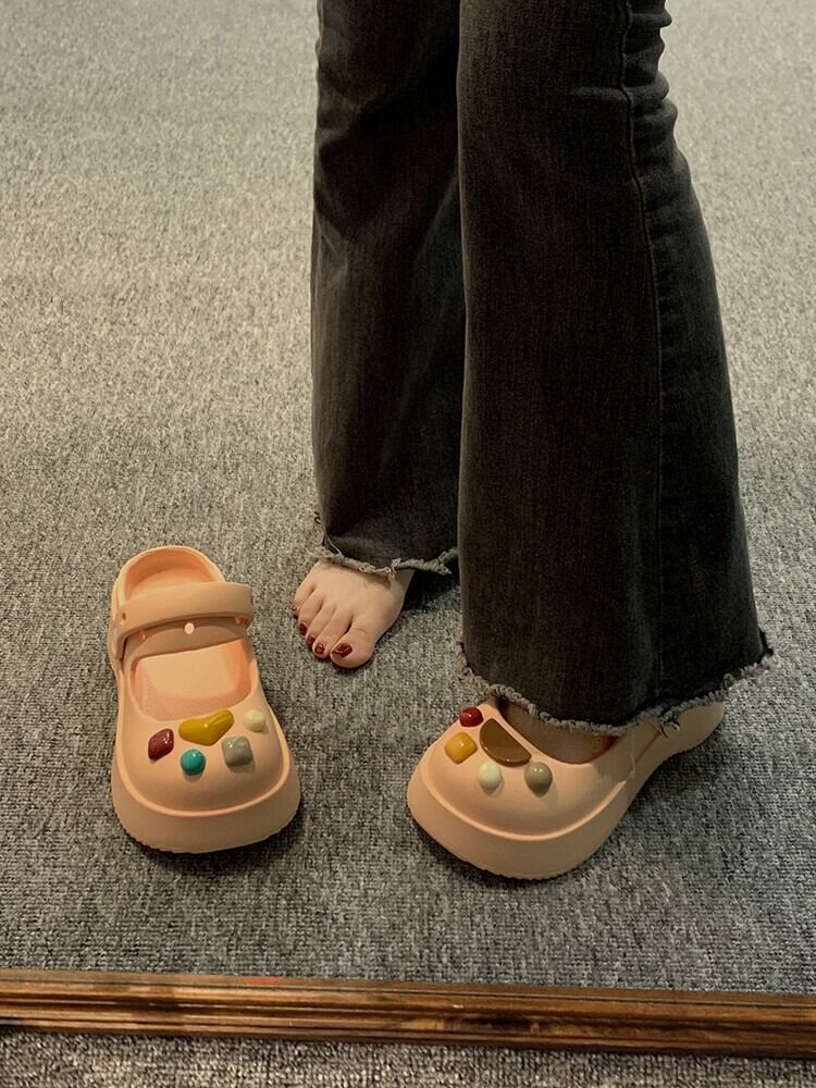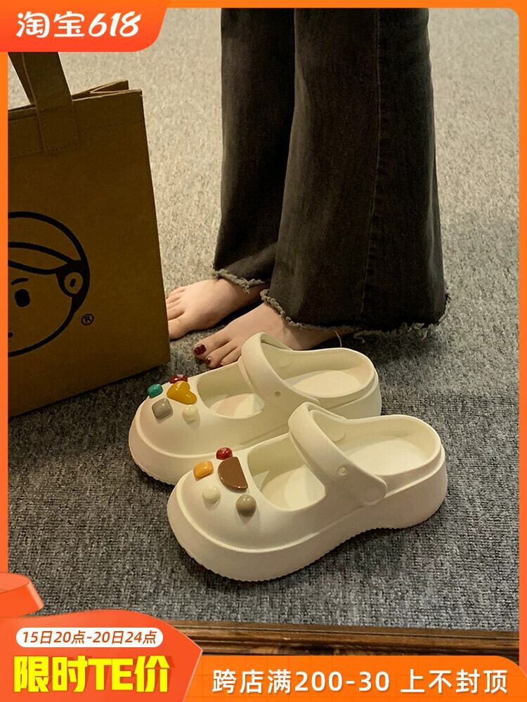 包頭レディースアウターウェア 2023 夏の新オールマッチかわいい漫画ネット赤滑り止め穴靴厚底スリッパ シューズ レッド ミュール 大人ガーリー スウィート キュート カジュアル サマー 夏物 jxjxf41951051882
