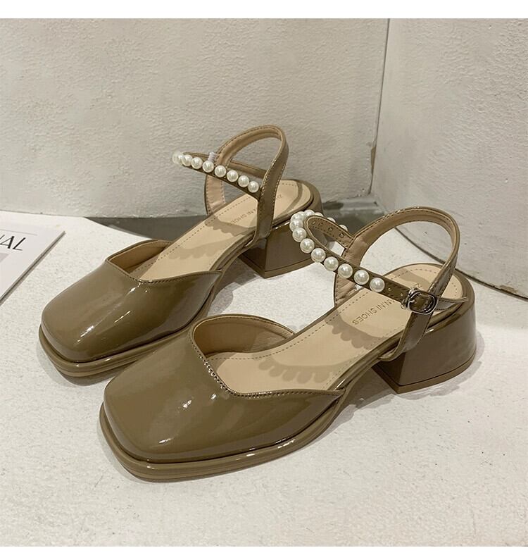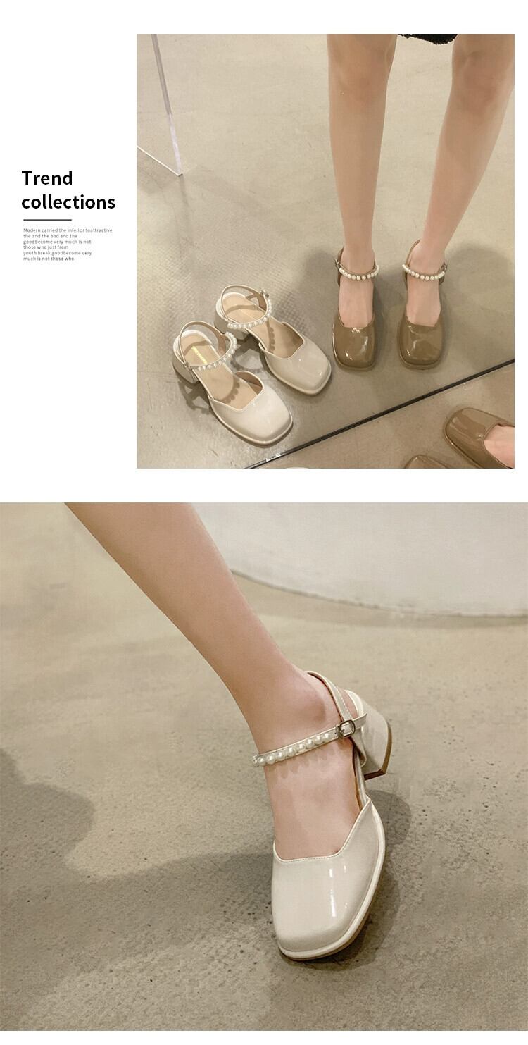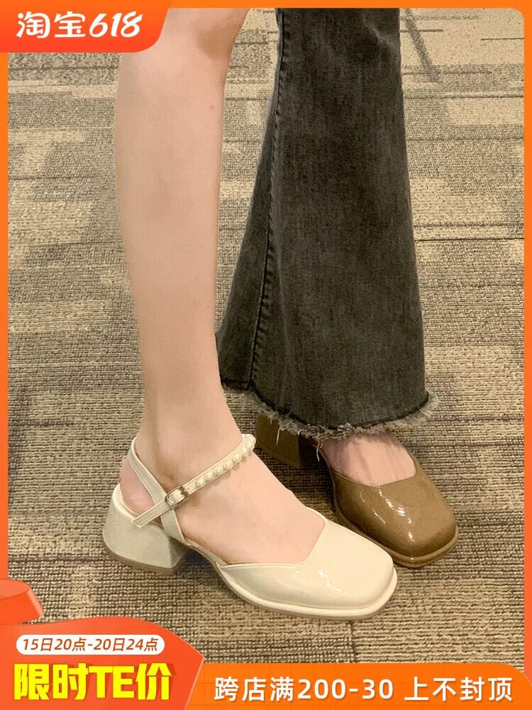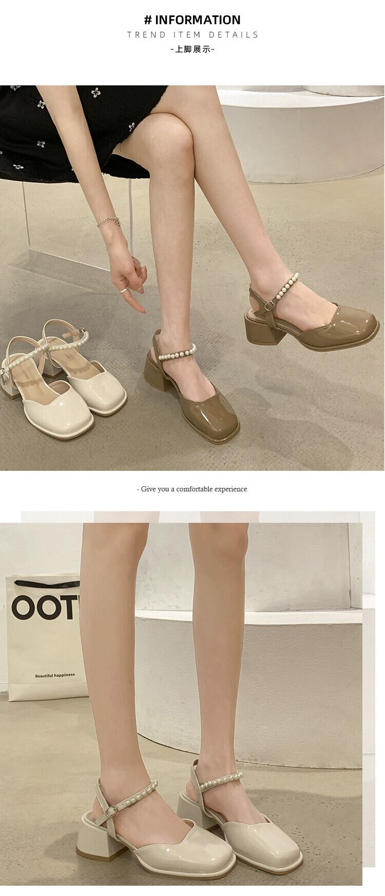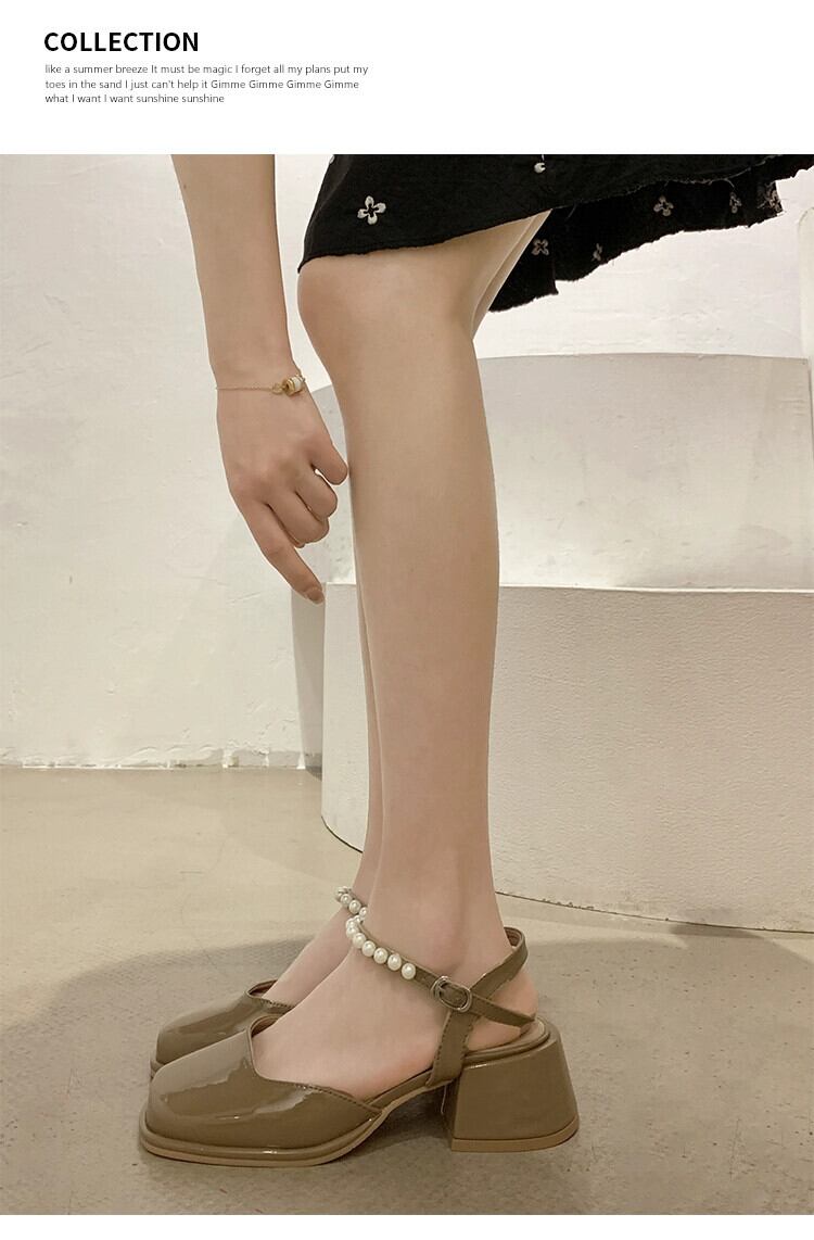 フランスサンダル女性の 2023 春の新しいファッションオールマッチ優しいパールレトロスクエアヘッド小さなハイヒール 靴 シューズ スプリング 春物 真珠 スクウェア jxjxf27550653123