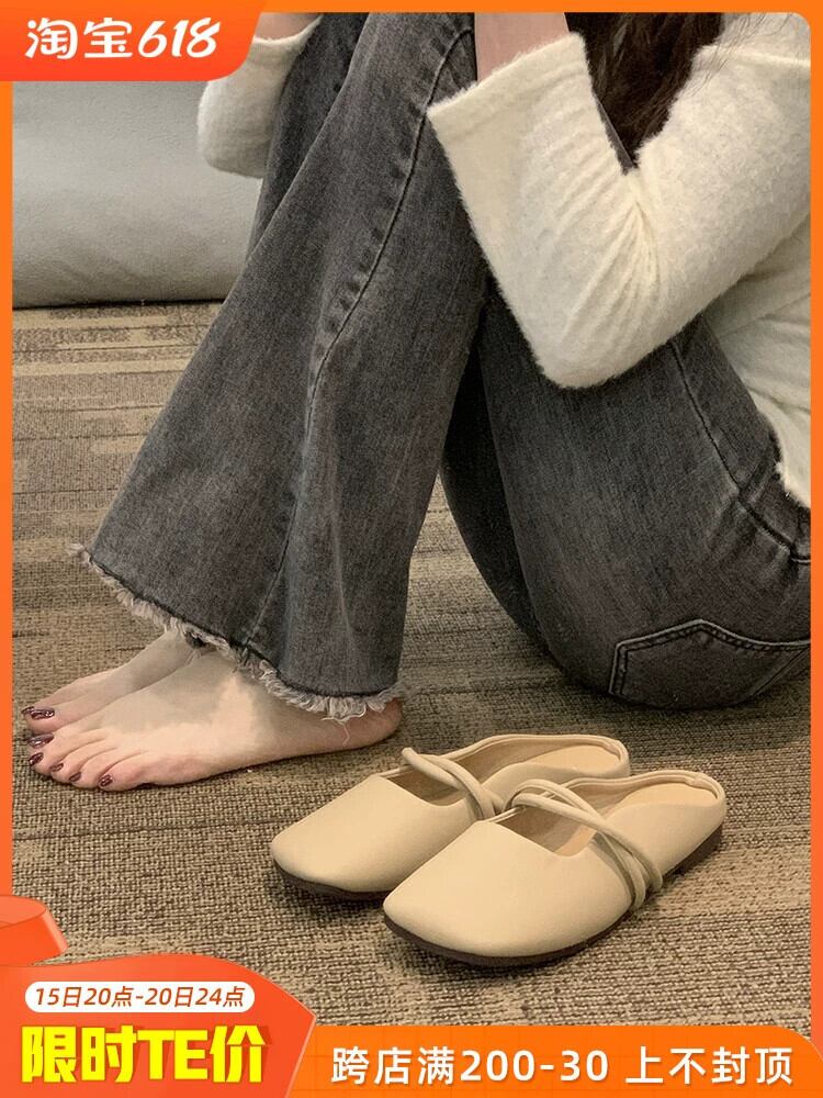 包頭セミスリッパ女性の 2023 新しいスタイルのアウターウェア優しいレトロなフラット気質サンダルとスリッパ優しい風サンダル ミュール 靴 シューズ jxjxf10749369382