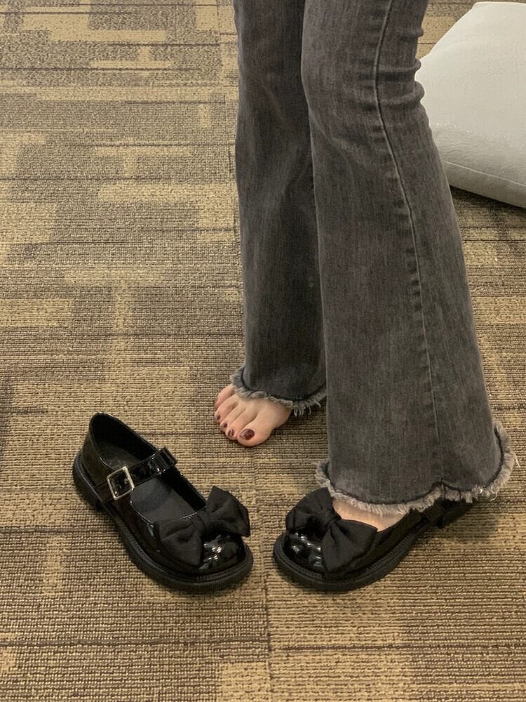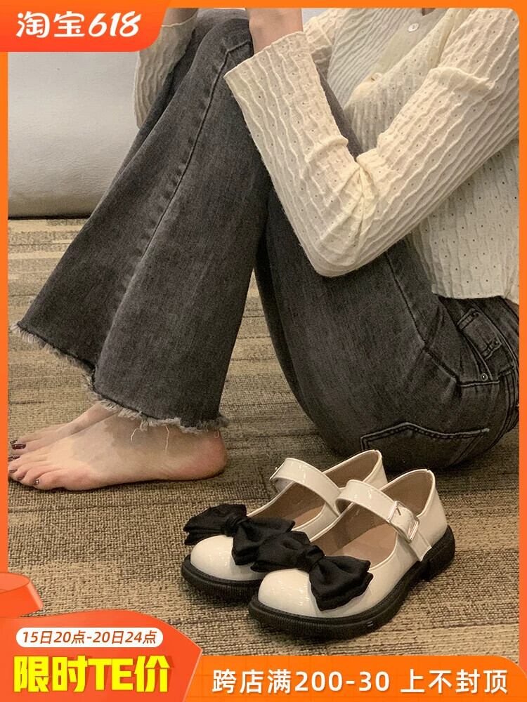 メリージェーンシューズ女性の2023春の新作ファッションオールマッチフレンチリボンスモールネットレッド厚底靴 スプリング 春物 jxjxf82439397009