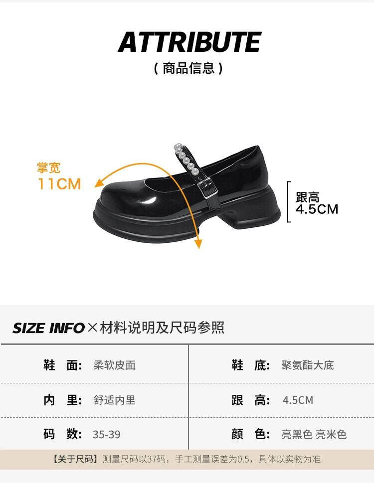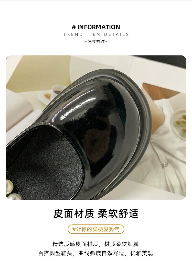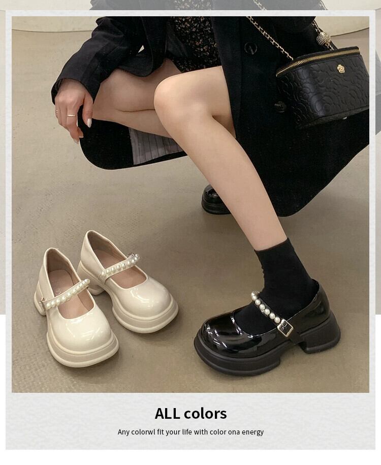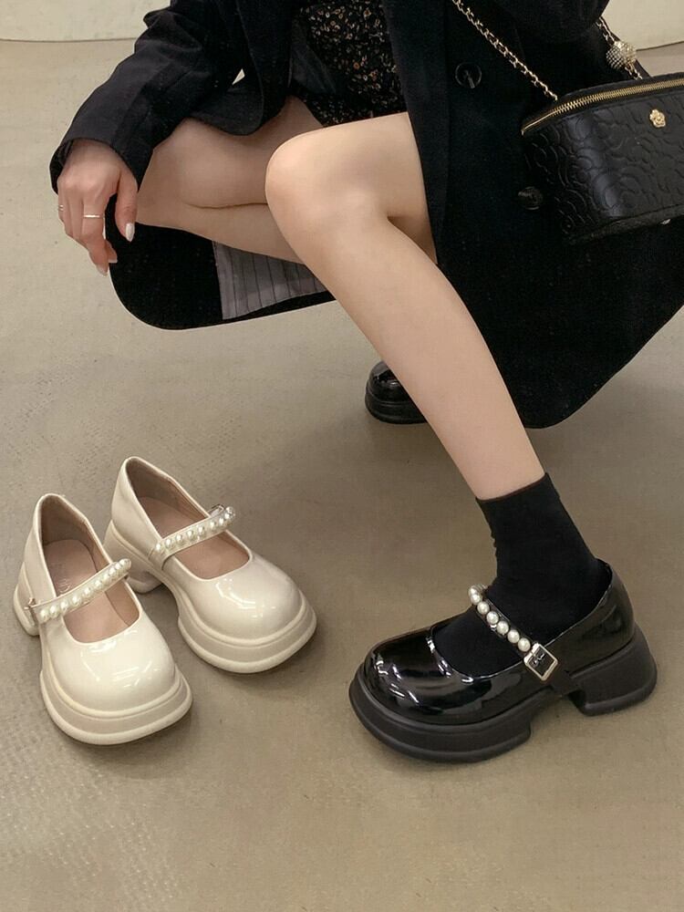 ese メリージェーンの靴の女性の 2023 春の新ファッションレトロパールベルトバックル太いヒール甘い小さな革靴 シューズ 大人ガーリー スウィート キュート カジュアル スプリング 春物 レザー ハーネス 真珠 jxjxf69460577274