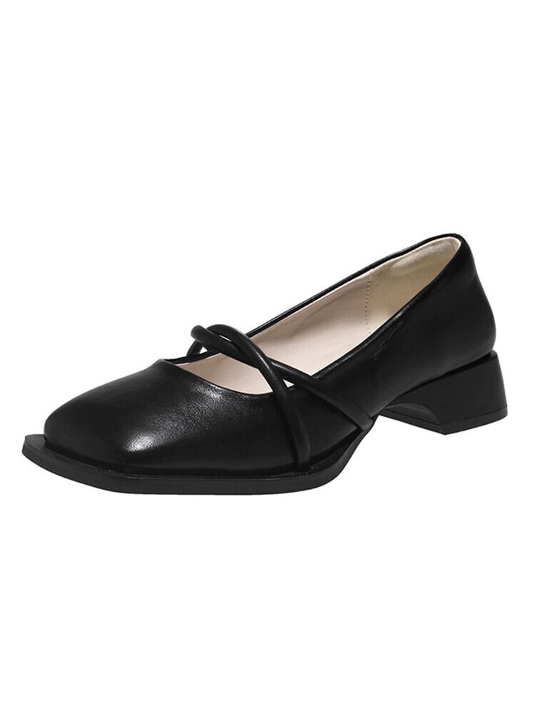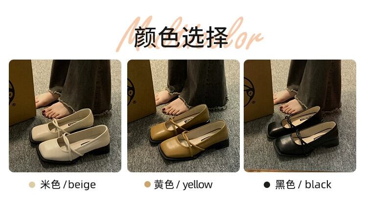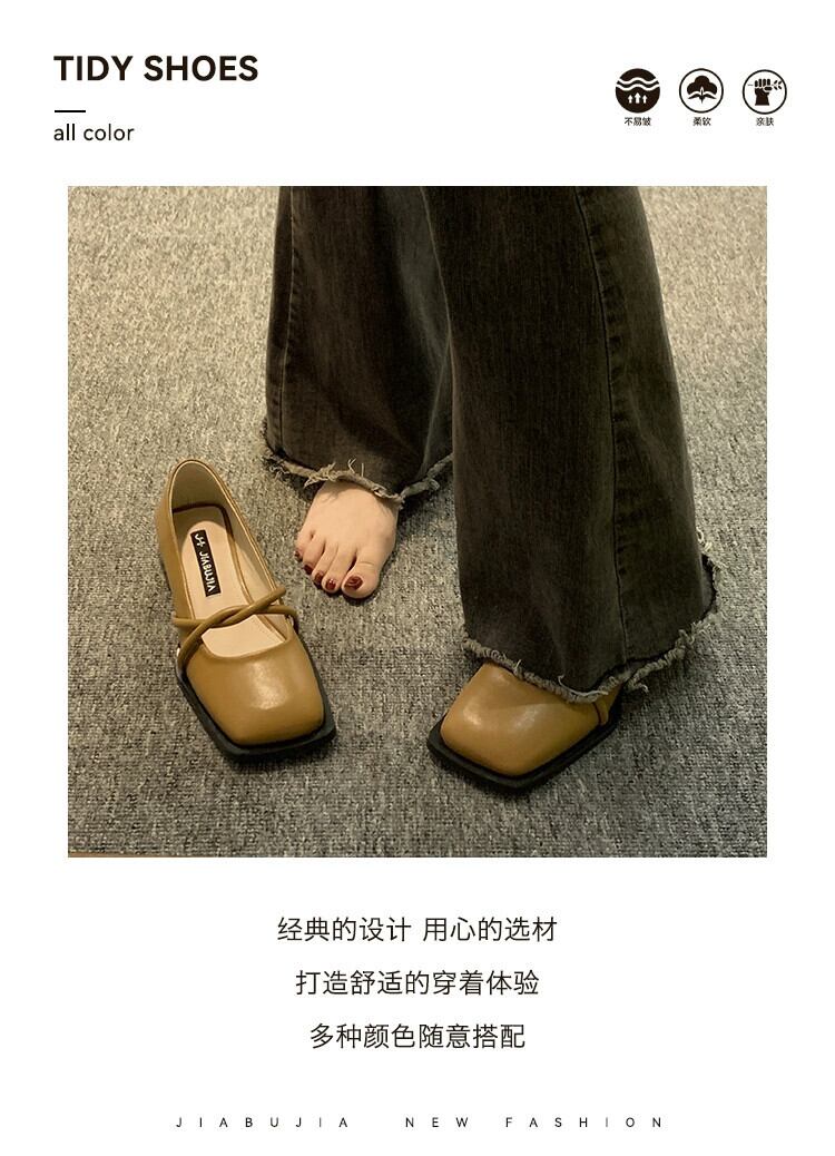 スクエアトゥシューズの女性の 2023 春の新ファッションオールマッチ優しいレトロ厚いヒールノンスリップフレンチレザーシューズトレンディ 靴 スプリング 春物 スクウェア jxjxf74122496612