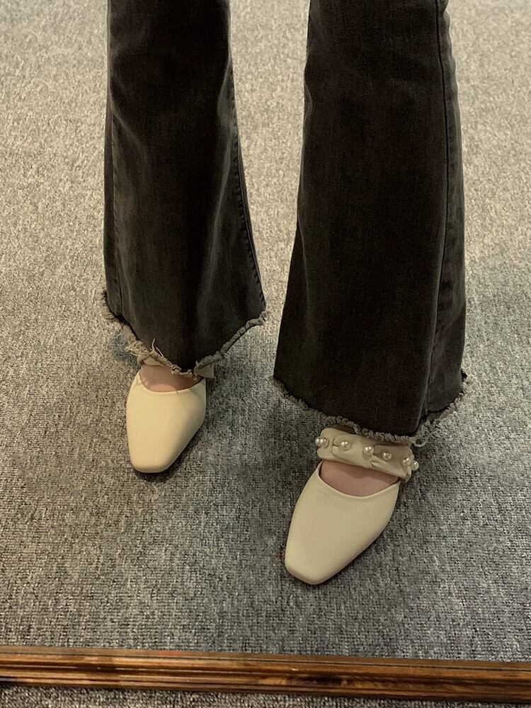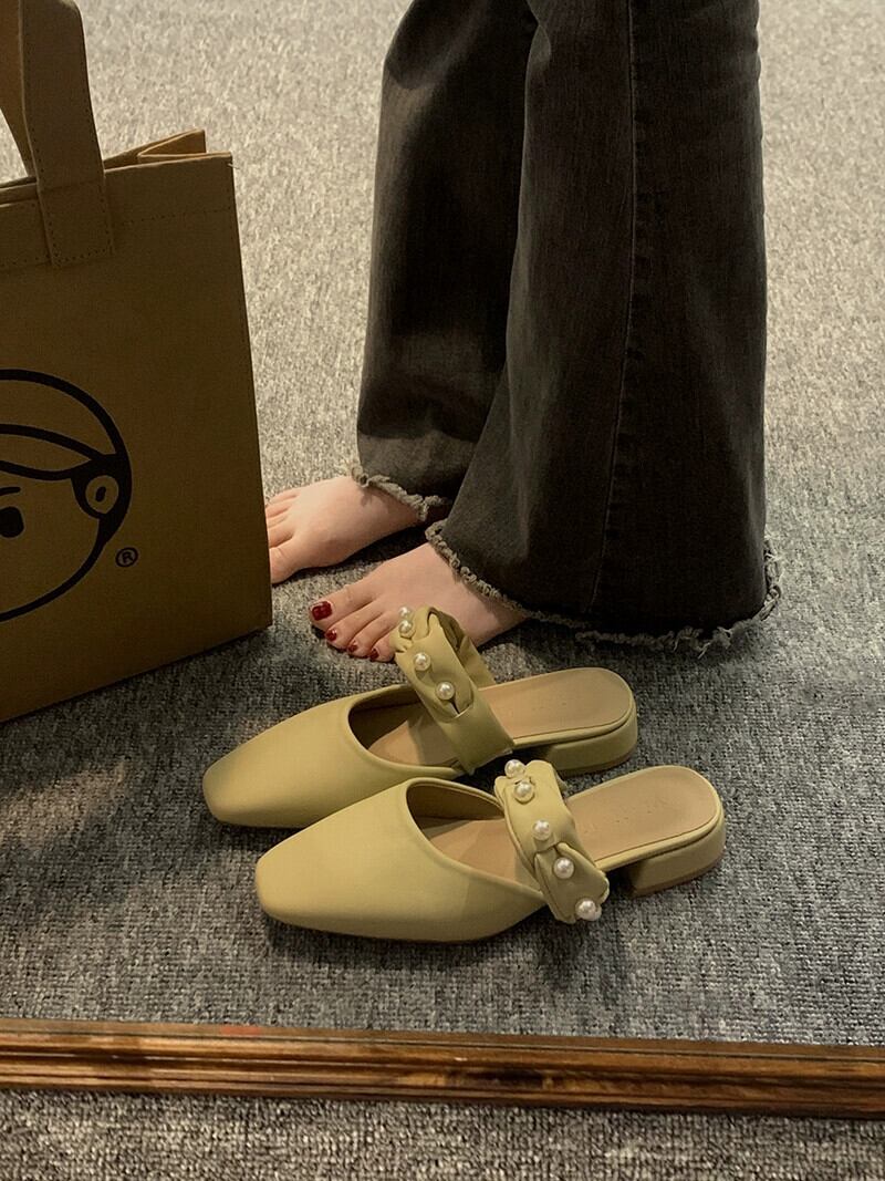 アウタースリッパ女性の 2023 春の新ファッションレトロオールマッチパール小さな厚いヒールノンスリップ包頭スリッパ ミュール 靴 シューズ スプリング 春物 真珠 jxjxf13085983012