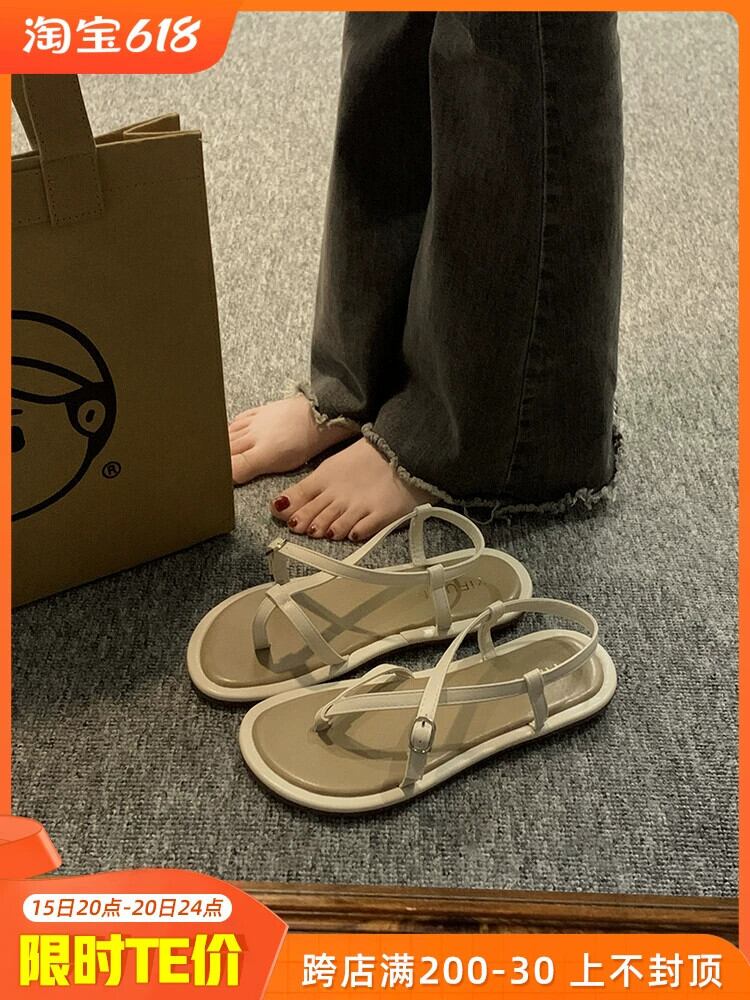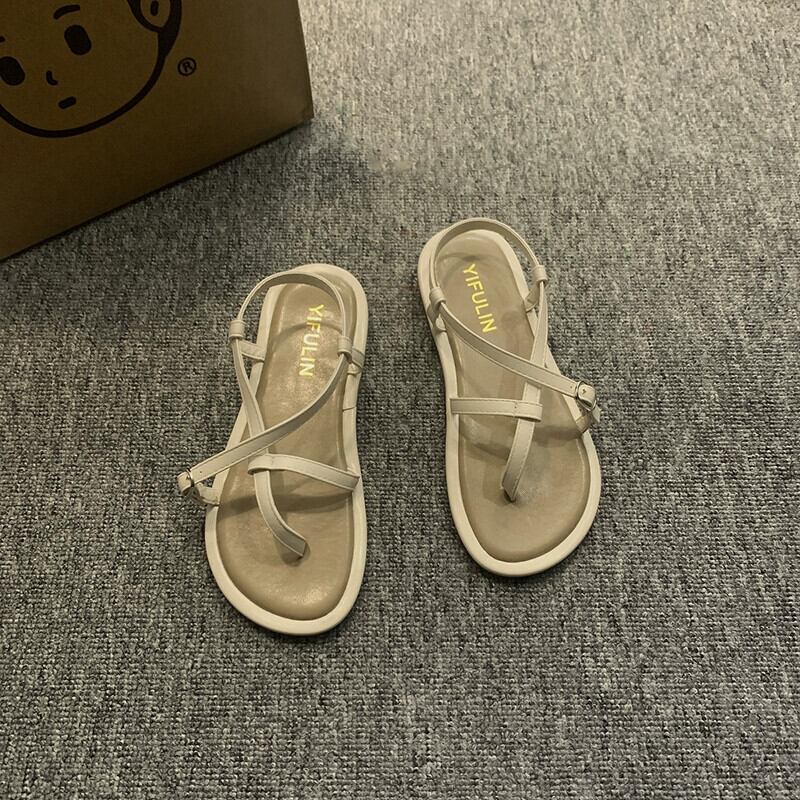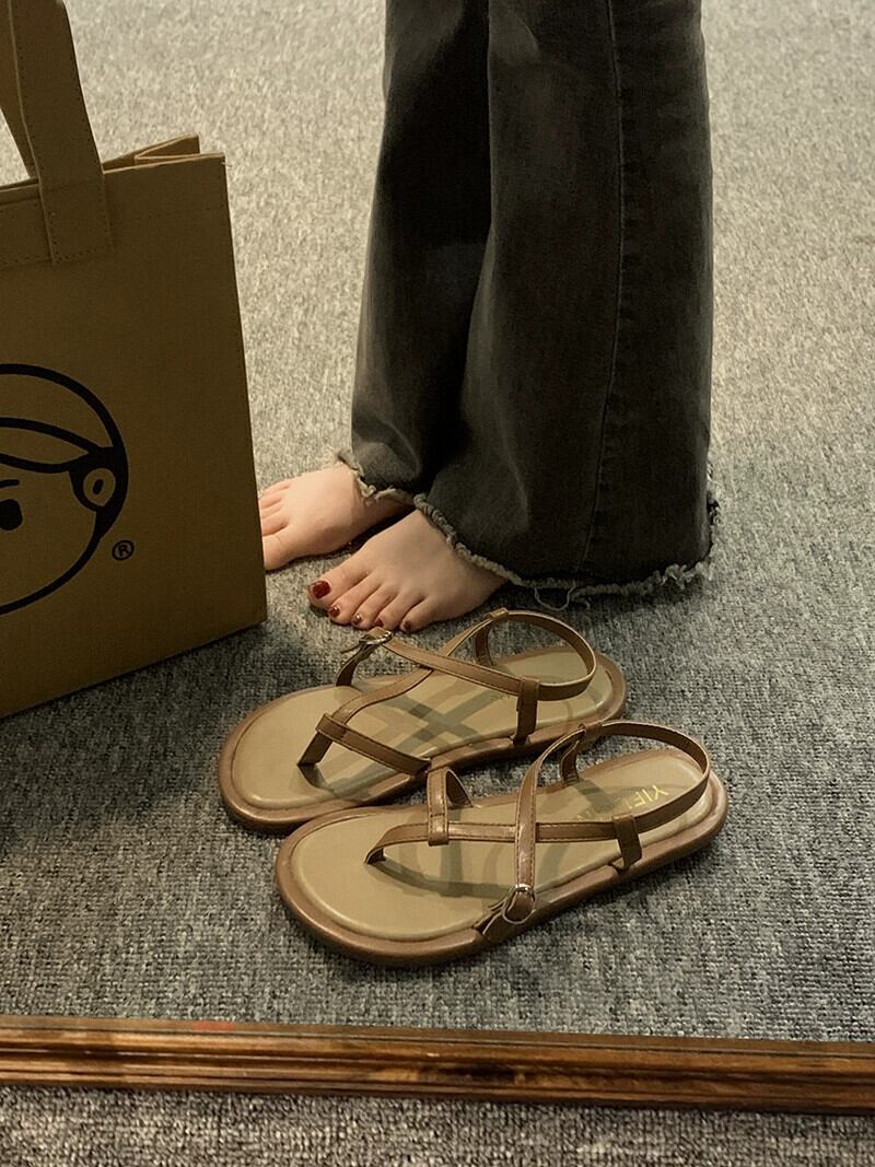 サンダル レディース 2023 春の新ファッションオールマッチレトロベルトバックルフラットノンスリップフリップフロップローマンビーチサンダル 靴 シューズ スプリング 春物 ハーネス jxjxf23078862073