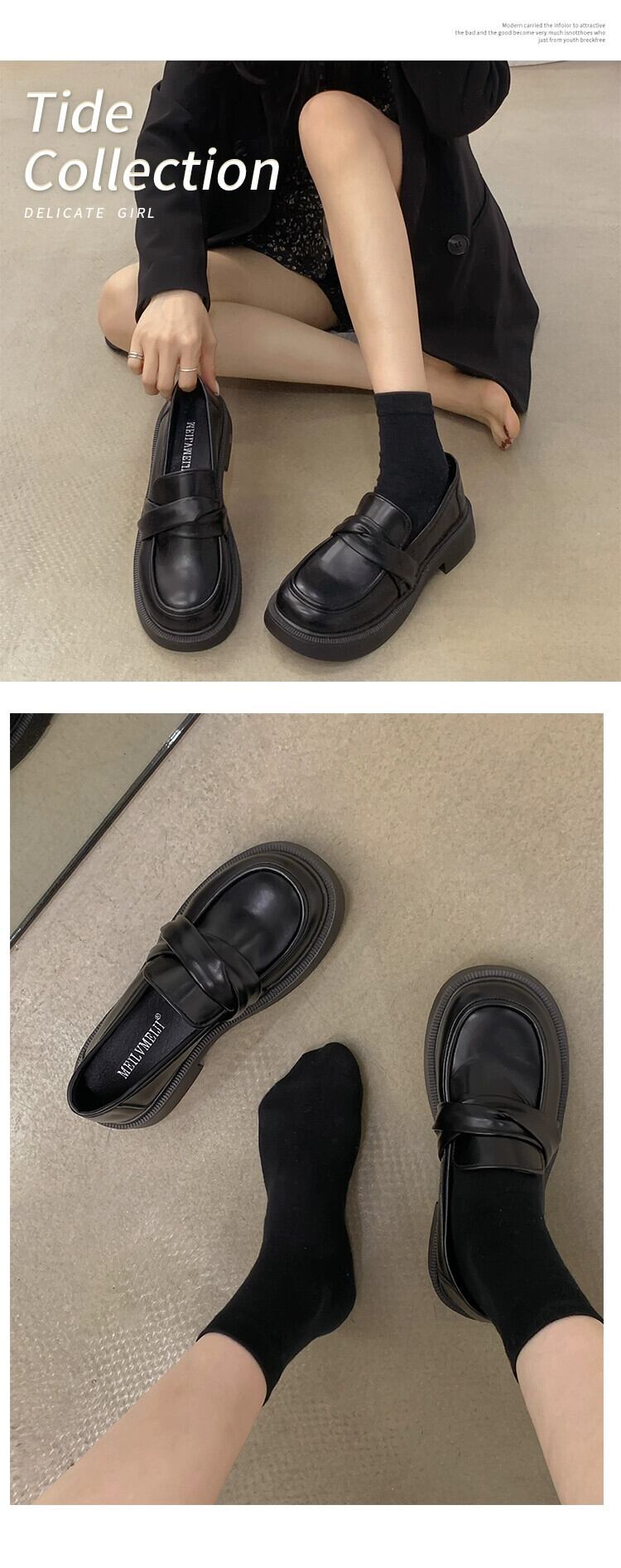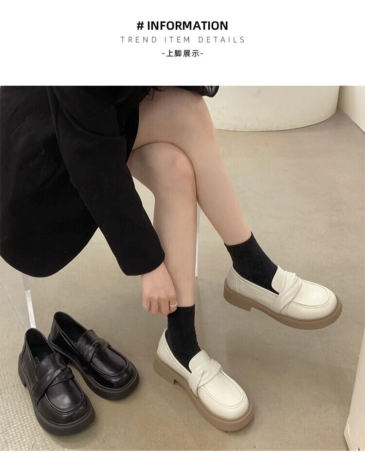 ローファーレディース 2023 春の新スーパーファッションオールマッチレトロ comtable ラウンドトゥ厚いヒールノンスリップ小さな革靴 シューズ スプリング 春物 ラウンドトー レザー jxjxf5823475503