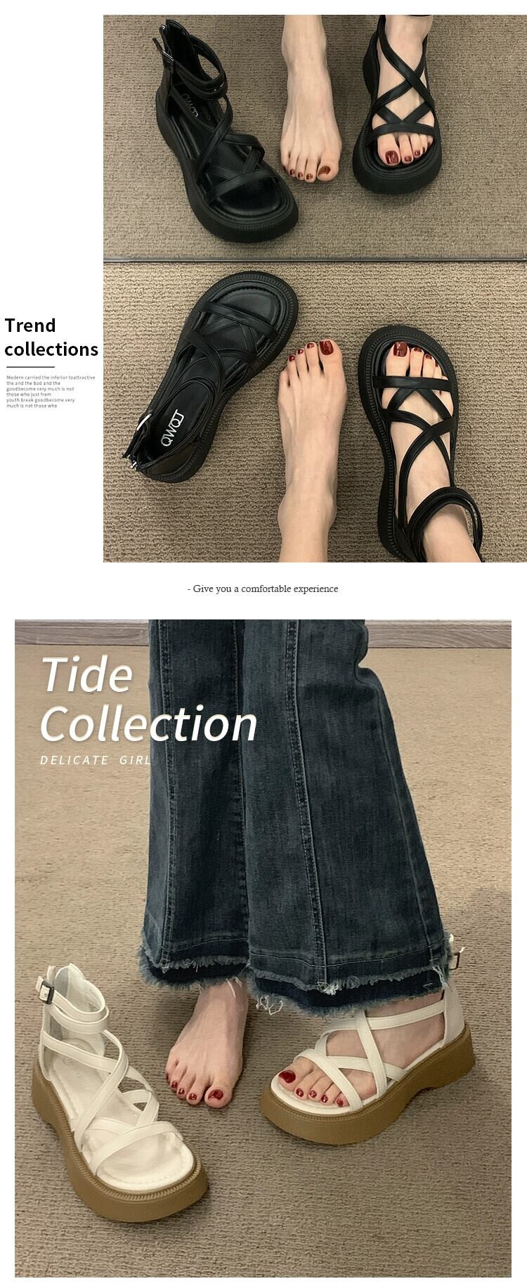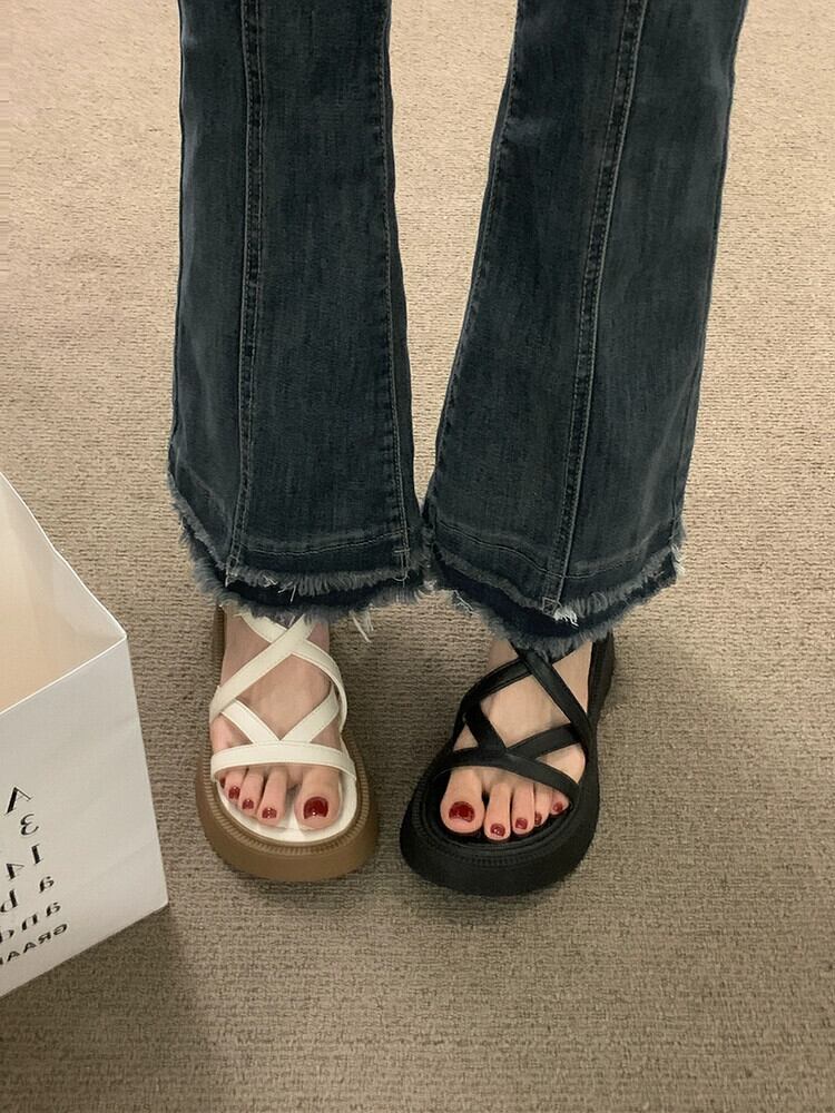 ネットセレブサンダルレディース2023春新作ファッションレトロオールマッチ小型厚底滑り止めローマンビーチサンダル 靴 シューズ スプリング 春物 jxjxf42411135883