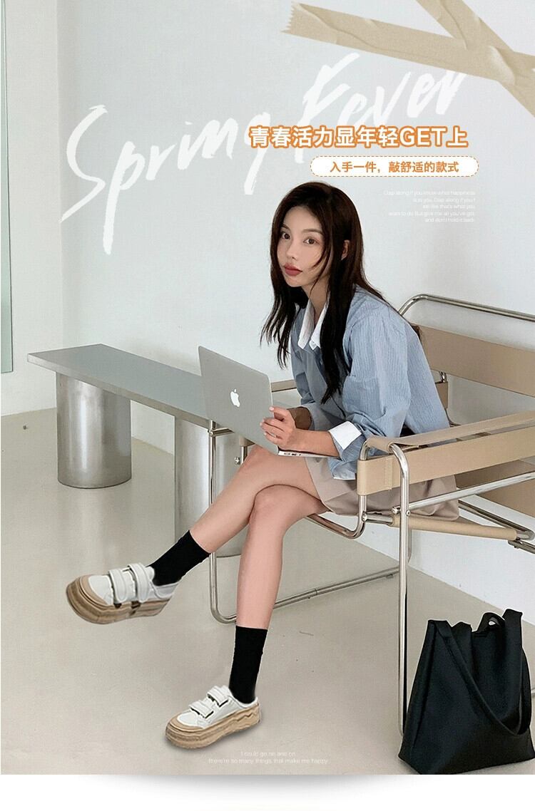 スニーカーレディース 2023 春の新ファッションオールマッチベルクロ学生厚底ノンスリップ comtable 白靴 シューズ ホワイト スプリング 春物 jxjxf65134155311