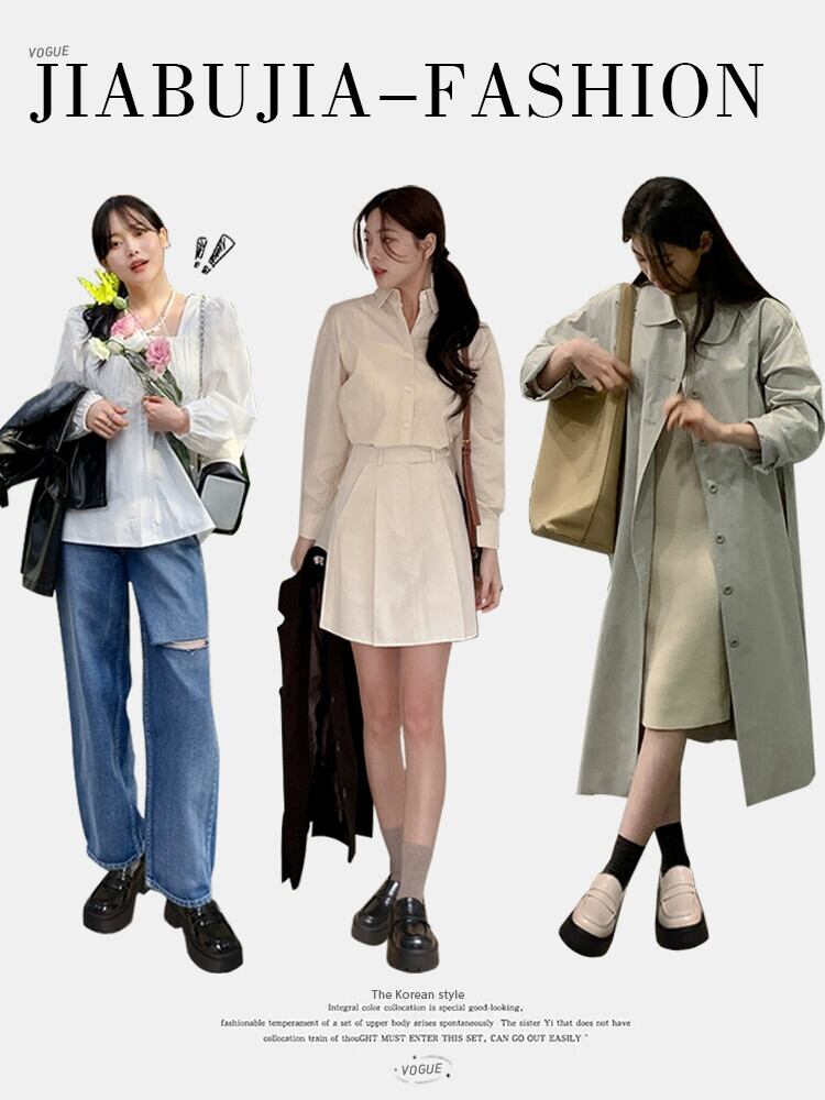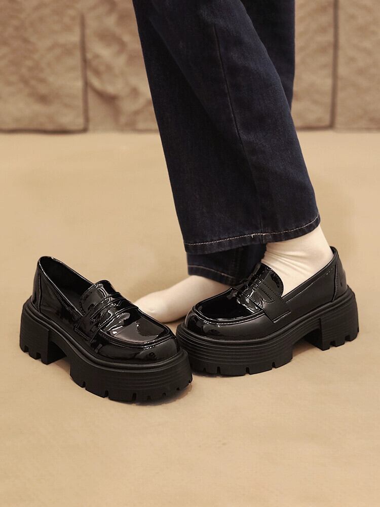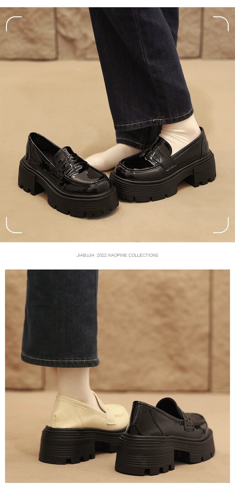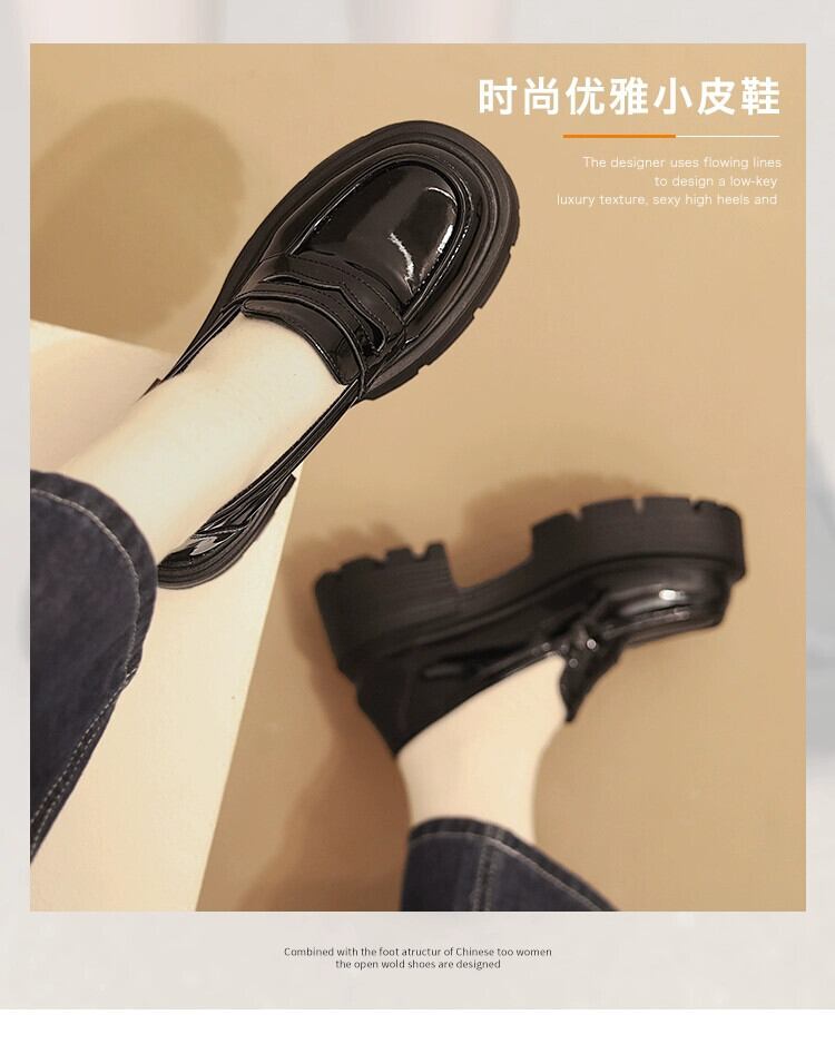 レトロローファー女性の 2023 春の新ファッションオールマッチ小さな comtable eign スタイル厚いヒールノンスリップ革靴 シューズ スプリング 春物 レザー jxjxf39496228562
