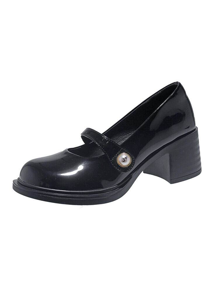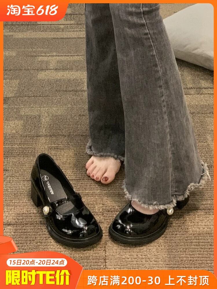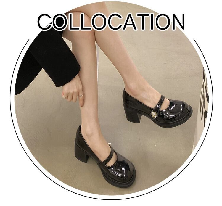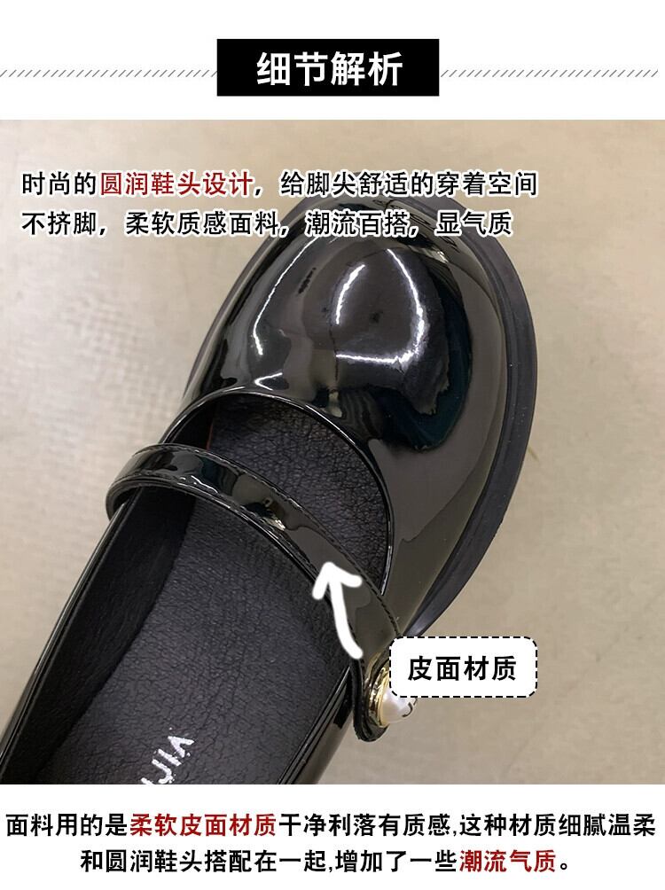 メリージェーンシューズの女性の 2023 春の新ファッションラウンドヘッド浅い口厚いヒールノンスリップレトロな eign スタイルの小さな革靴トレンド スプリング 春物 レザー jxjxf2651866098