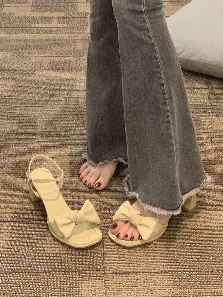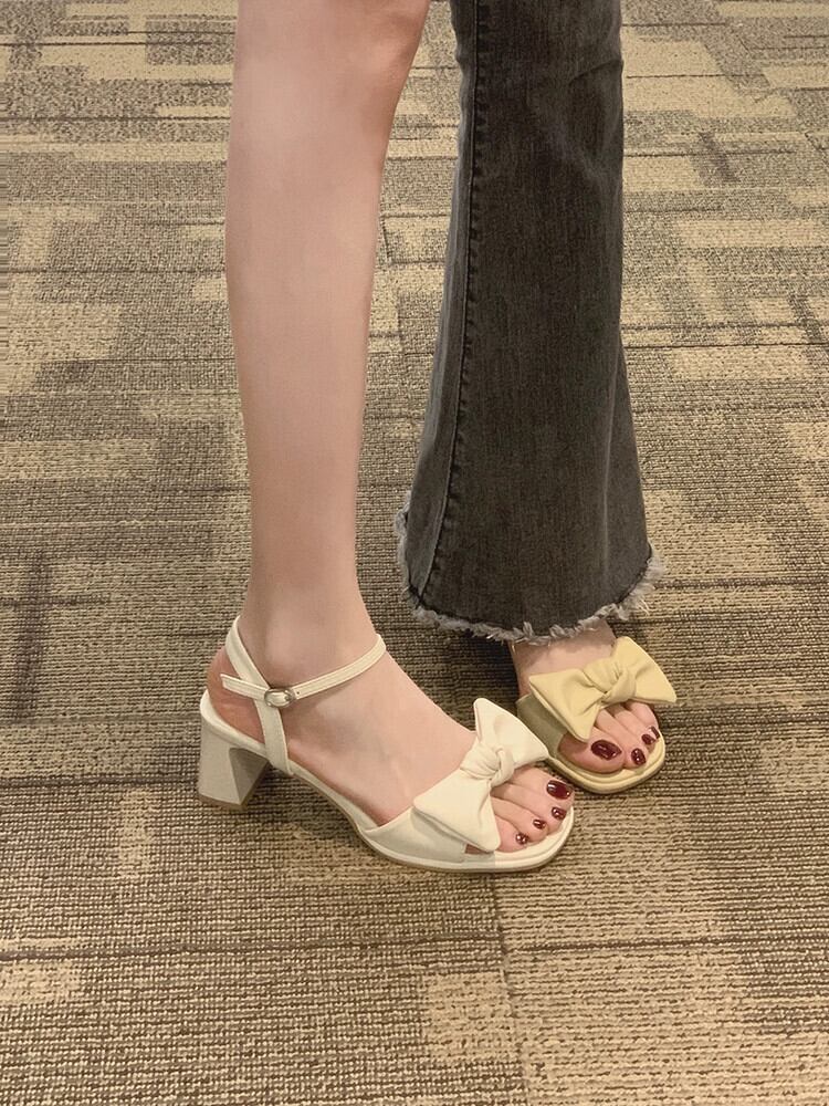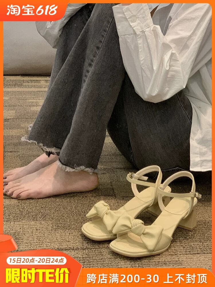 スカートサンダル付きレディース2023年春新作ファッションオールマッチレトロリボン分厚い一言ハイヒールトレンド 靴 シューズ スプリング 春物 jxjxf3099463528