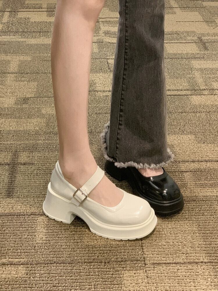 メアリージェーン婦人靴 2023 ハイヒールの新しいオールマッチ小さな白い厚いヒールのフレンチスタイルの靴、スカートと小さな革靴 シューズ ホワイト レザー jxjxf44213174053