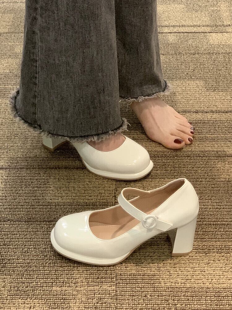 シングルシューズ女性の 2023 春の新ファッションレトロバックル浅い口ハイヒールノンスリップ eign スタイルメリージェーン靴 スプリング 春物 jxjxf29559697780