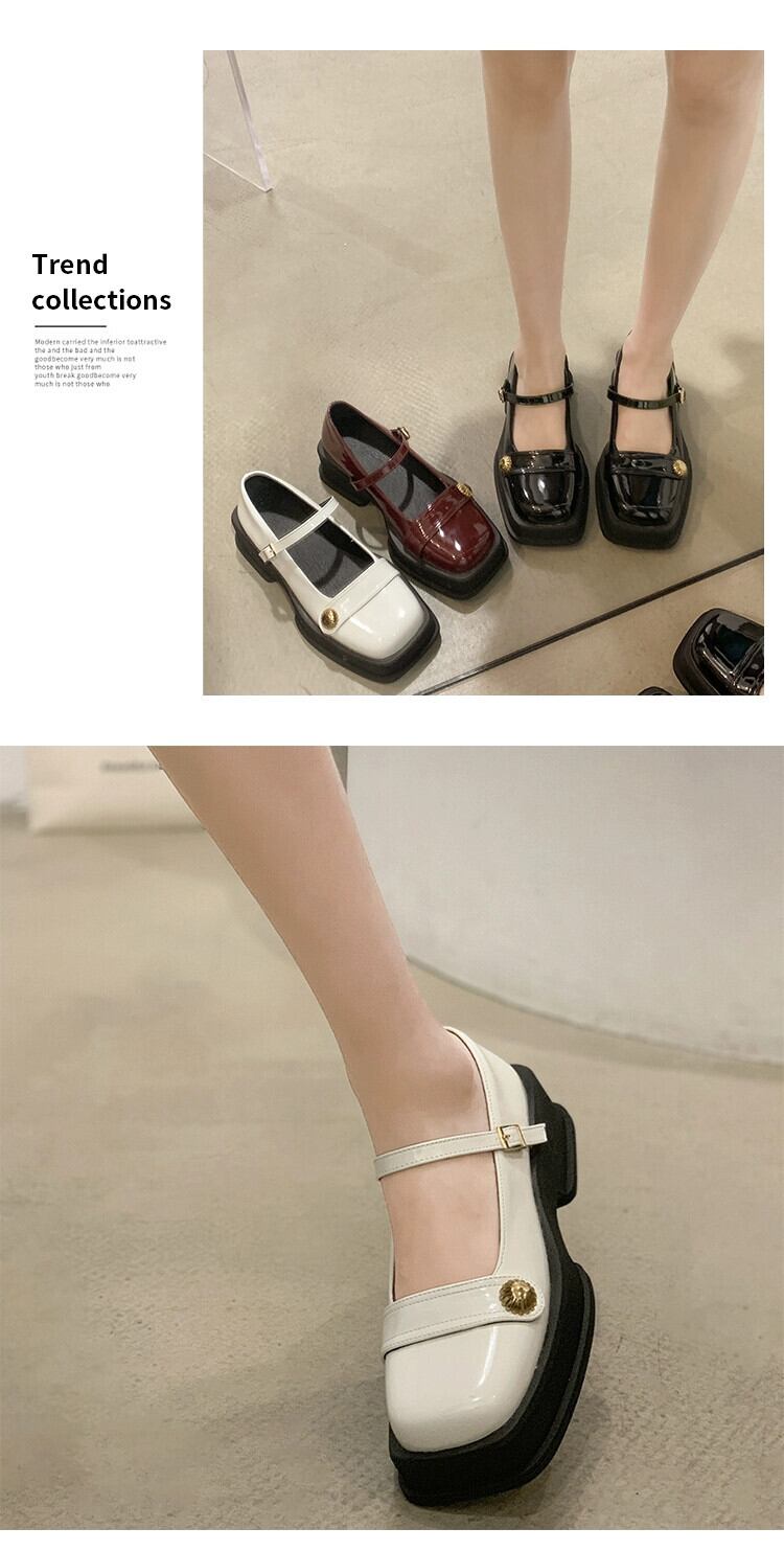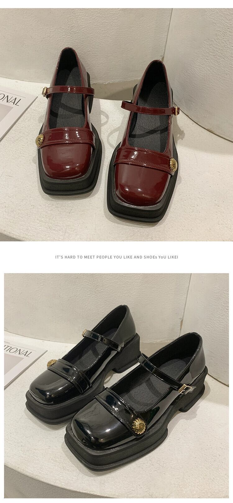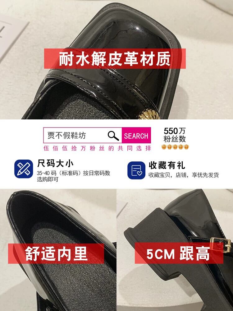 浅い口の小さな革靴の女性の 2023 春の新フレンチレトロ小さな分厚いノンスリップスクエアトゥメリージェーンシューズ スプリング 春物 レザー スクウェア jxjxf89457142332