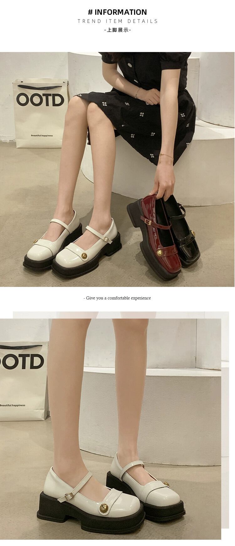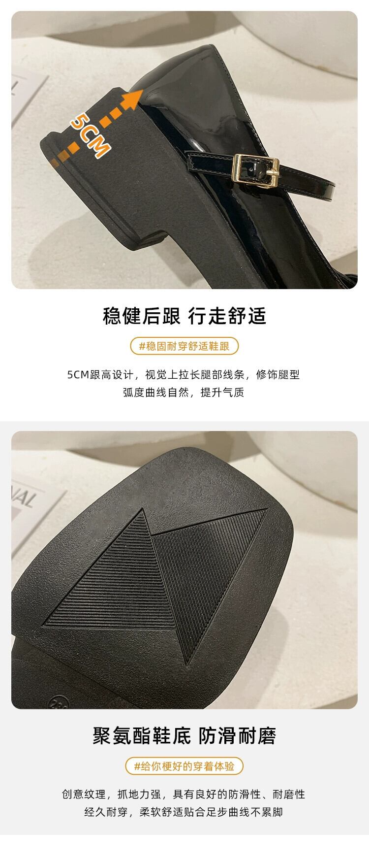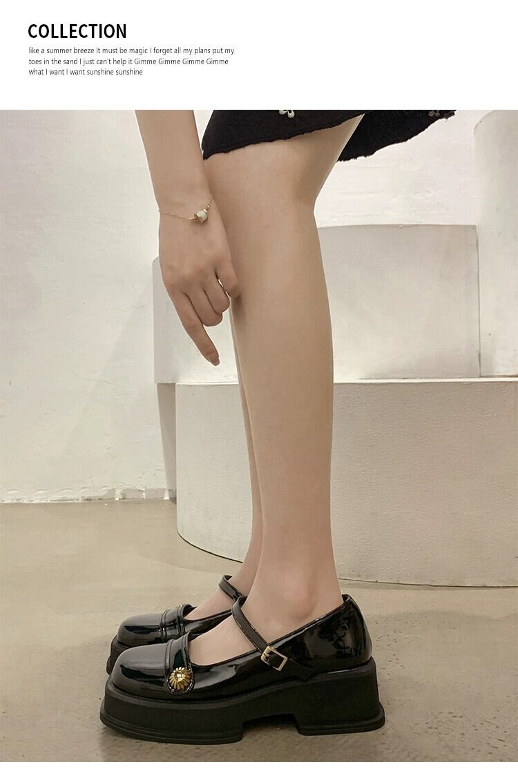 浅い口の小さな革靴の女性の 2023 春の新フレンチレトロ小さな分厚いノンスリップスクエアトゥメリージェーンシューズ スプリング 春物 レザー スクウェア jxjxf89457142332