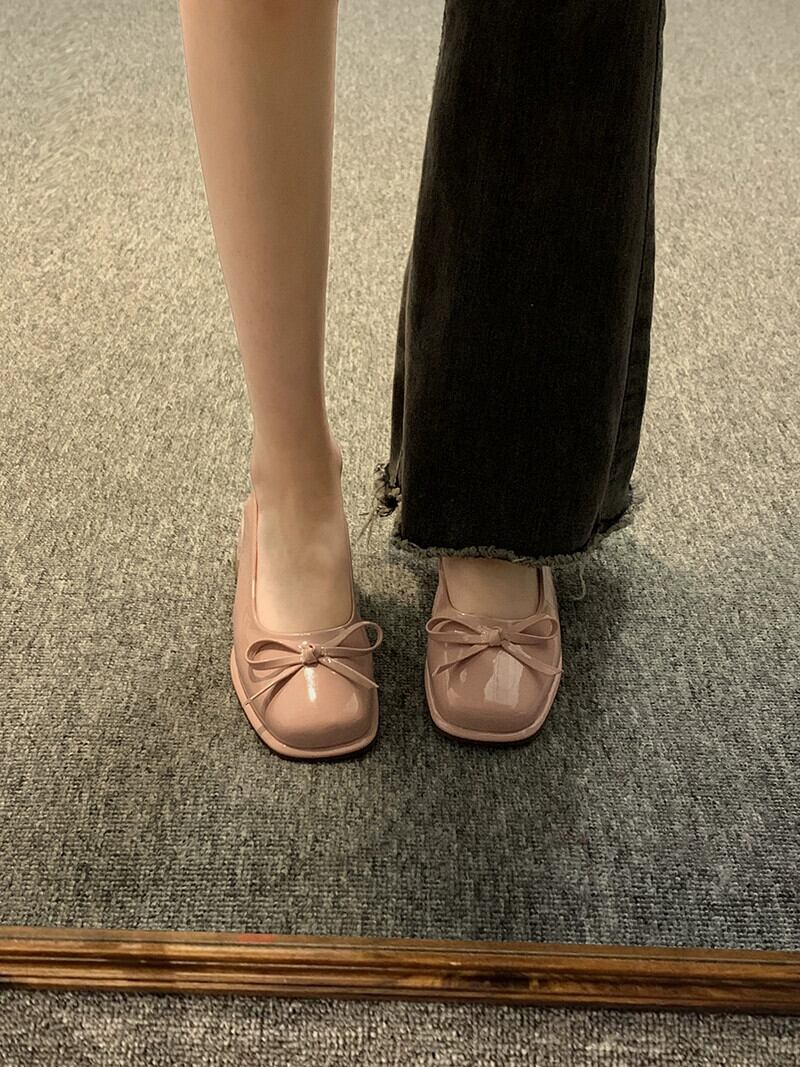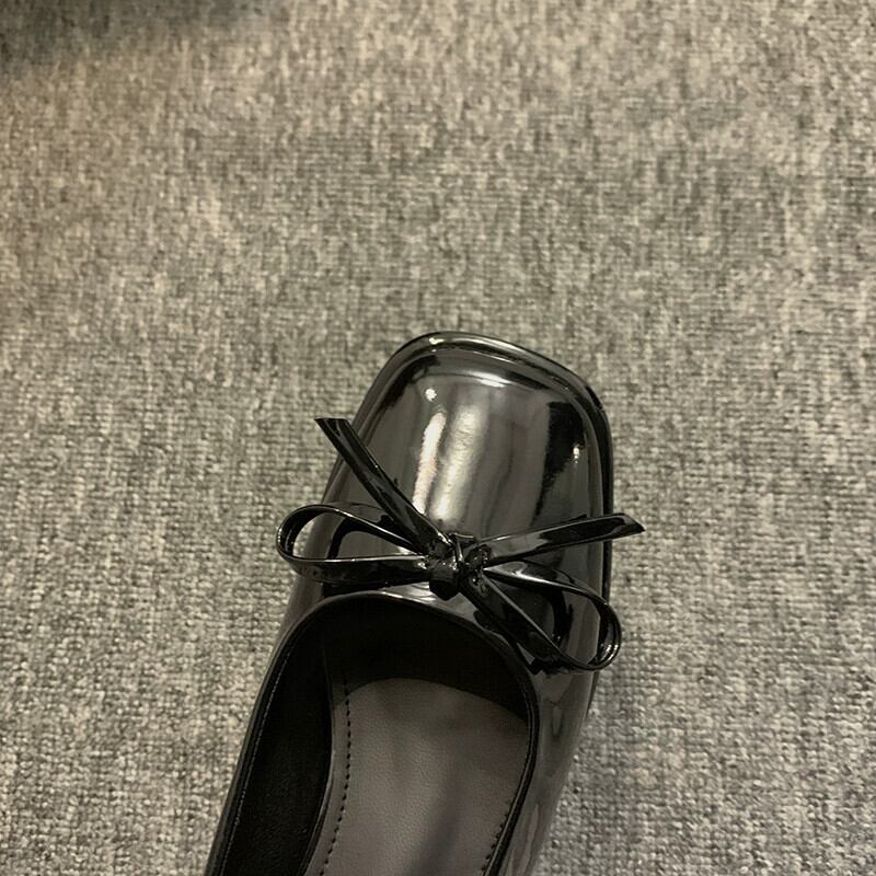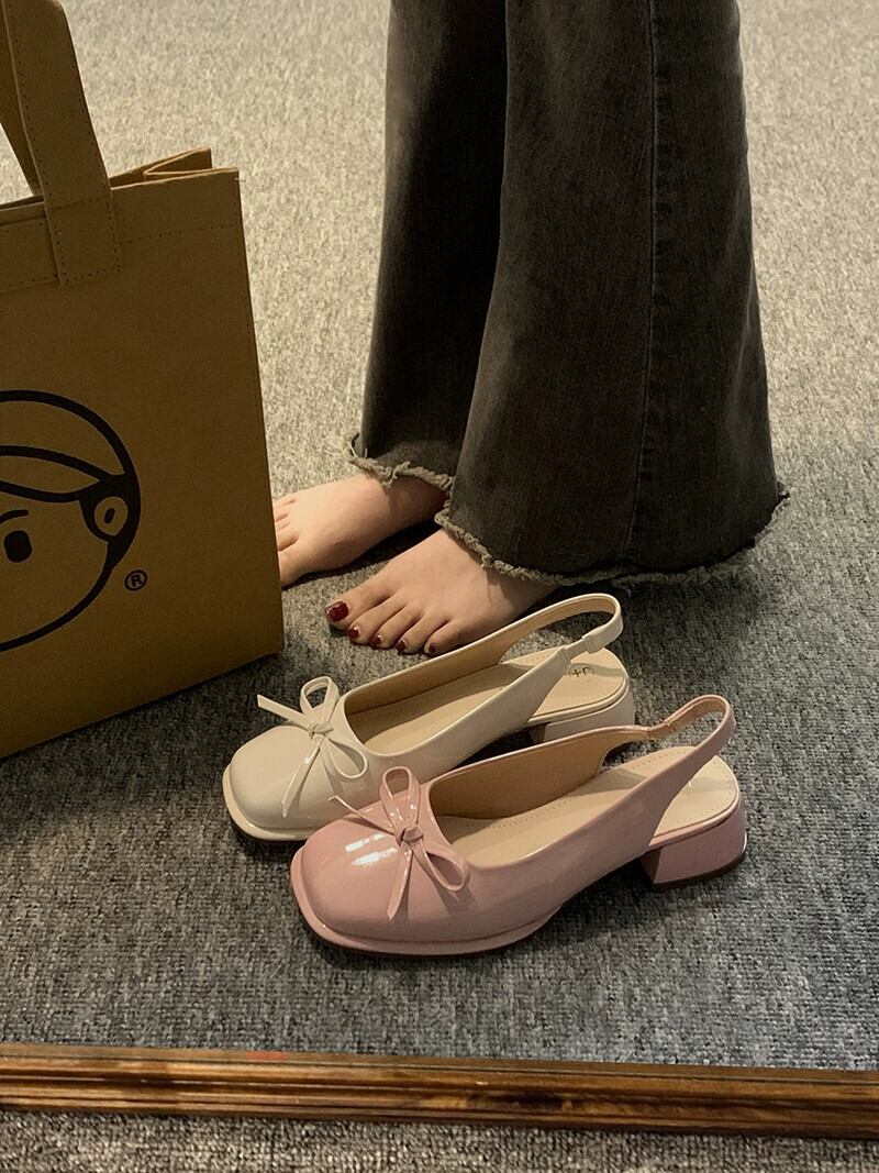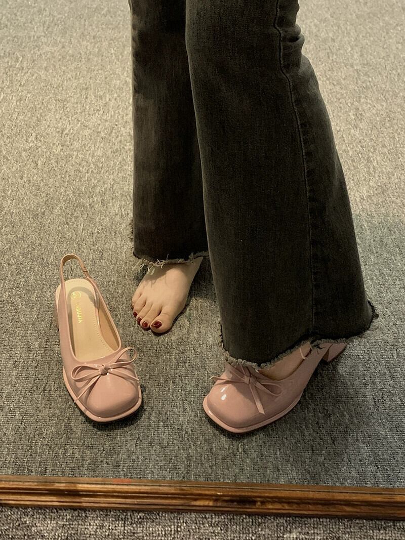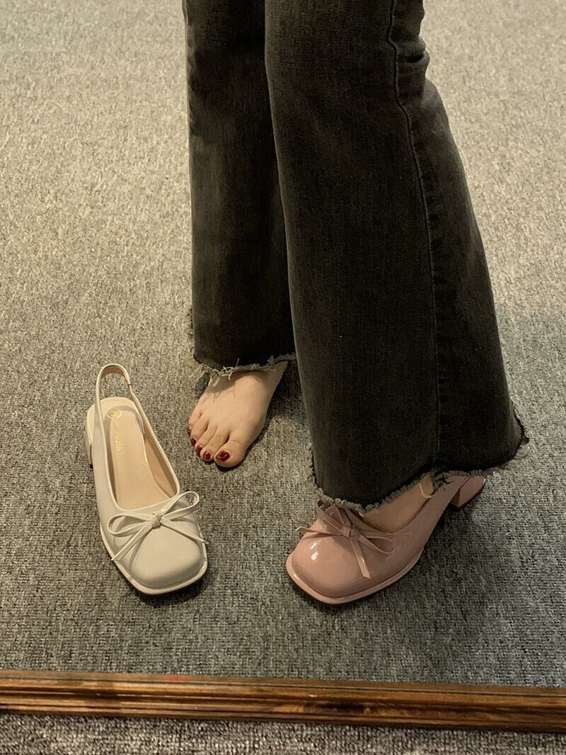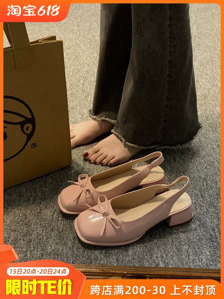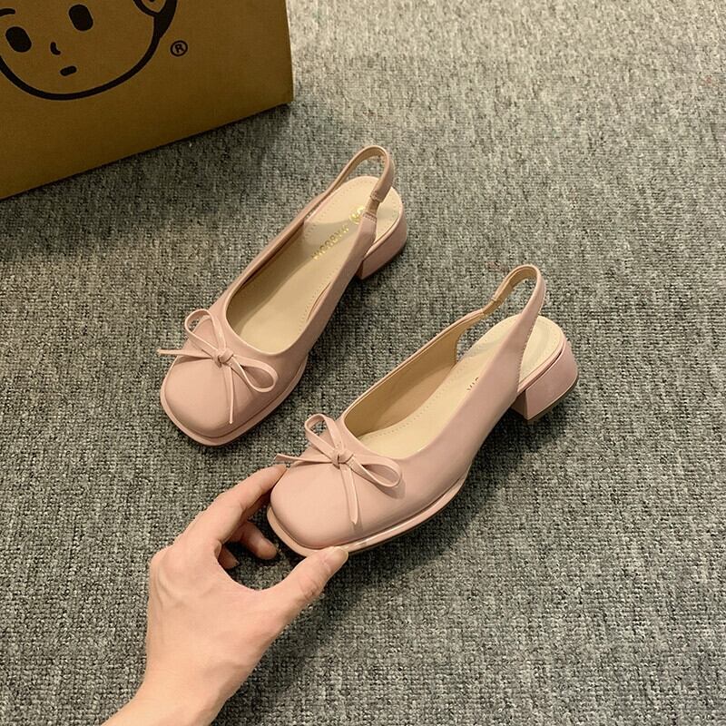 包頭サンダルの女性の 2023 春の新ファッションオールマッチ弓厚いヒール妖精風スカート小さな革靴 シューズ リボン スプリング 春物 レザー jxjxf22130338