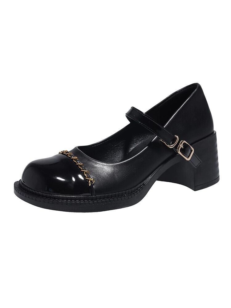 メリージェーンシューズ女性の 2023 春の新ファッションフレンチレトロ浅い口厚いヒールノンスリップラウンドトゥ小さな革靴潮 スプリング 春物 ラウンドトー レザー jxjxf98711596004