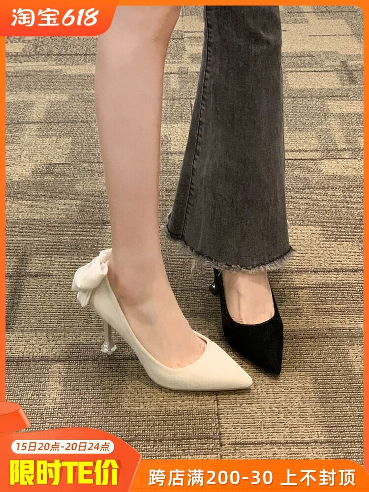 インターネット有名人の尖ったつま先の靴の女性の 2023 春の新ファッションオールマッチちょう結び小剣気質ハイヒール シューズ リボン スプリング 春物 jxjxf67535153348