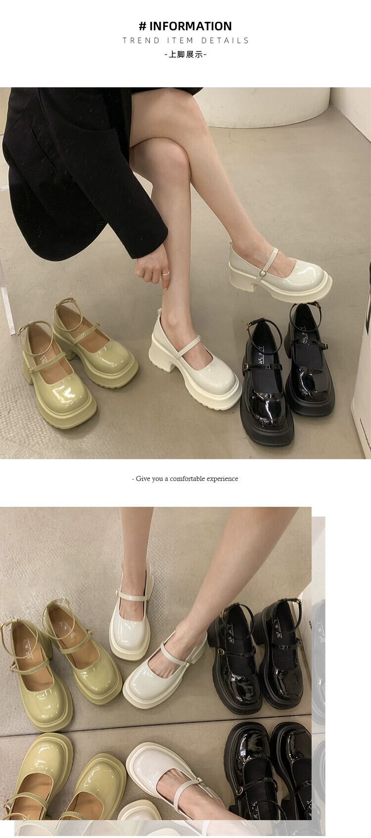 ese メリージェーンシューズ女性の 2023 春の新ファッションオールマッチ jk スカート厚いヒールノンスリップ小さな革靴潮 スプリング 春物 レザー jxjxf47774666653