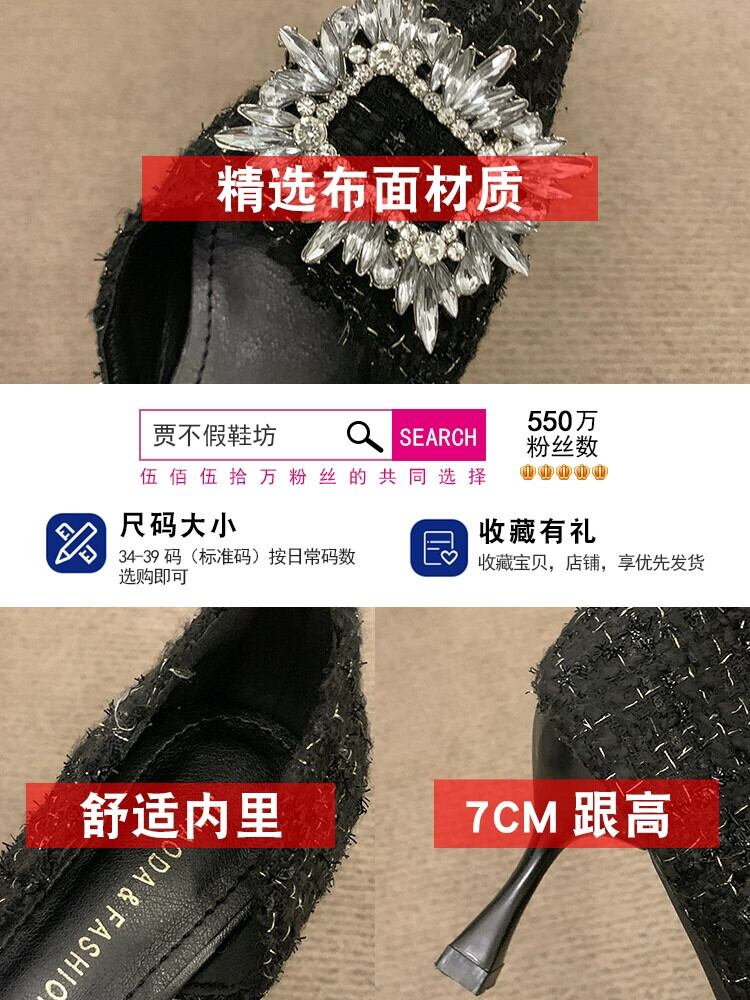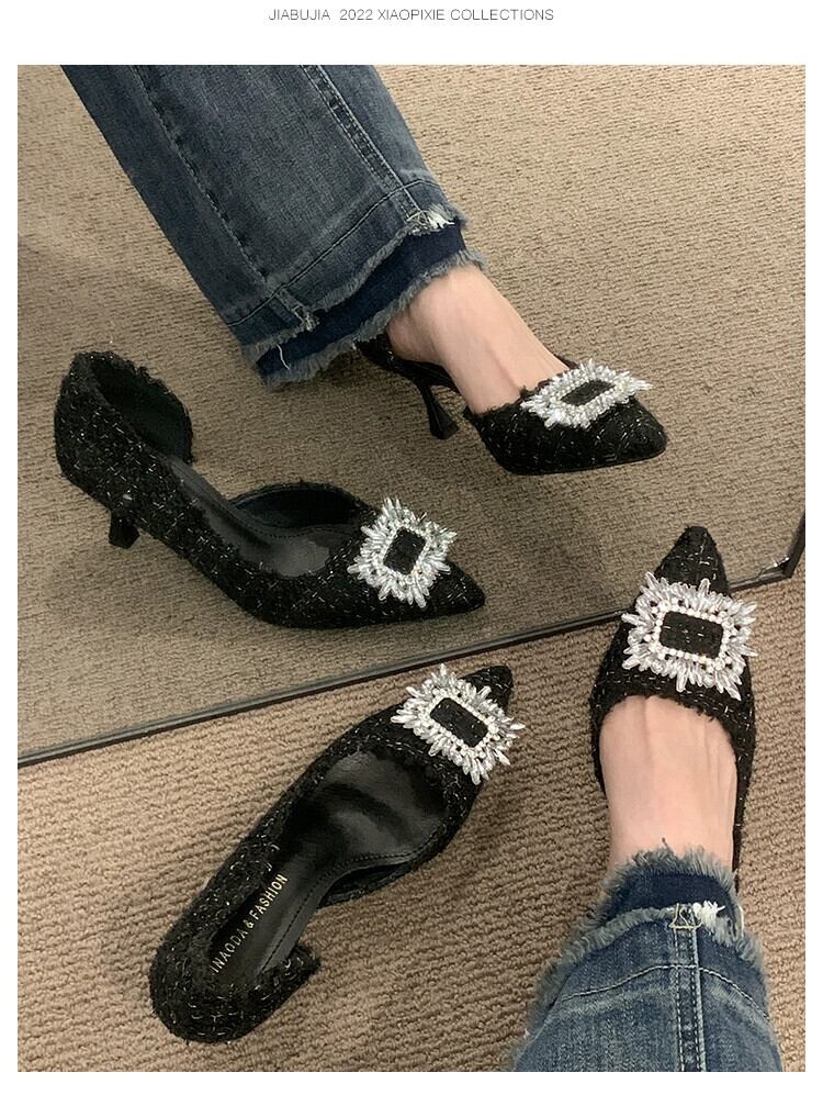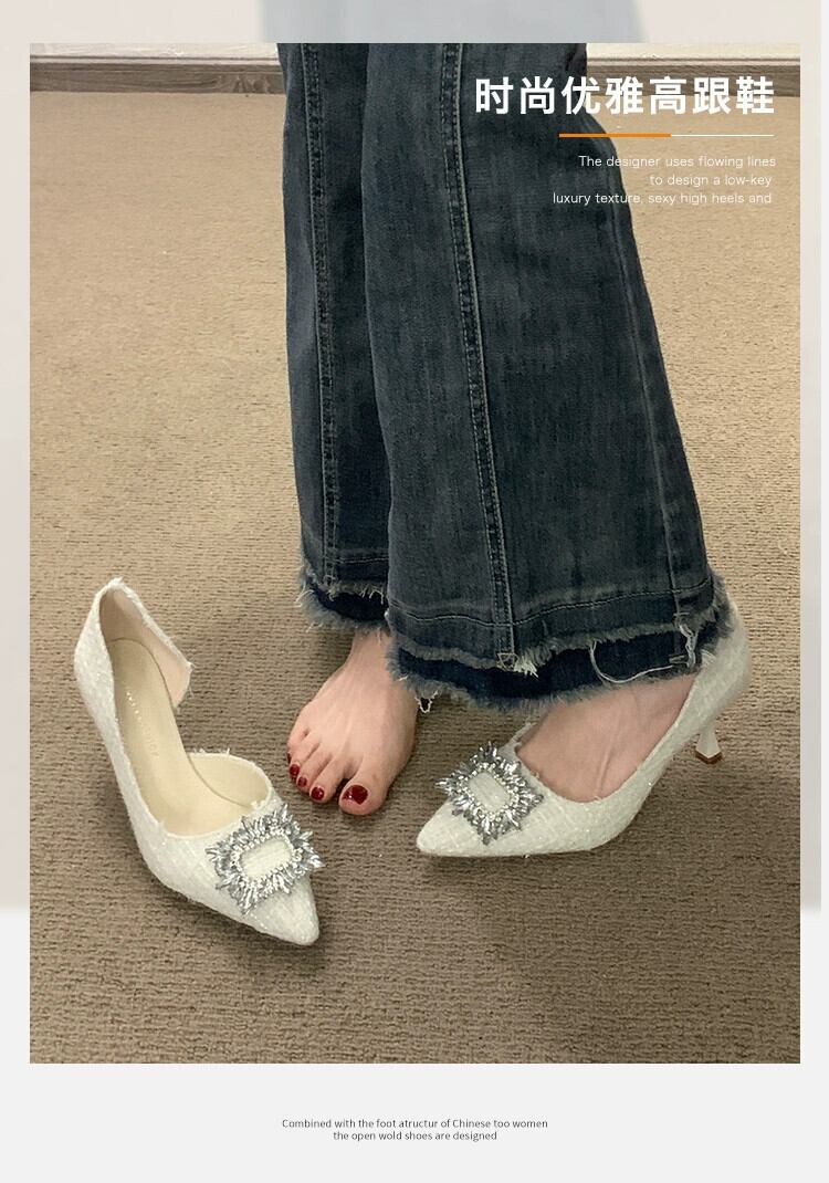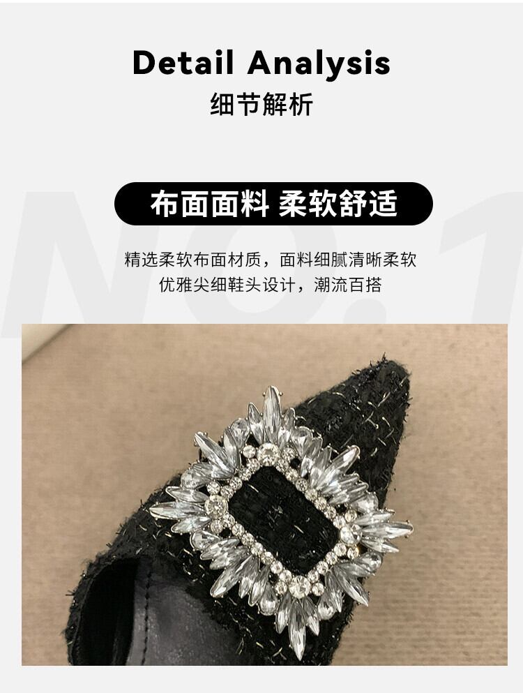 インターネットセレブシングルシューズレディース 2023 春の新ファッションオールマッチレトロアインスタイルラインストーンスタイル尖ったハイヒールトレンド 靴 スプリング 春物 jxjxf42448658899