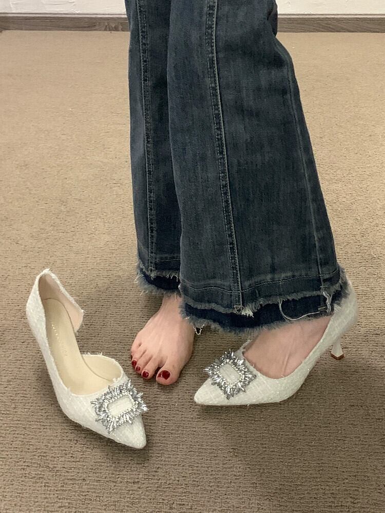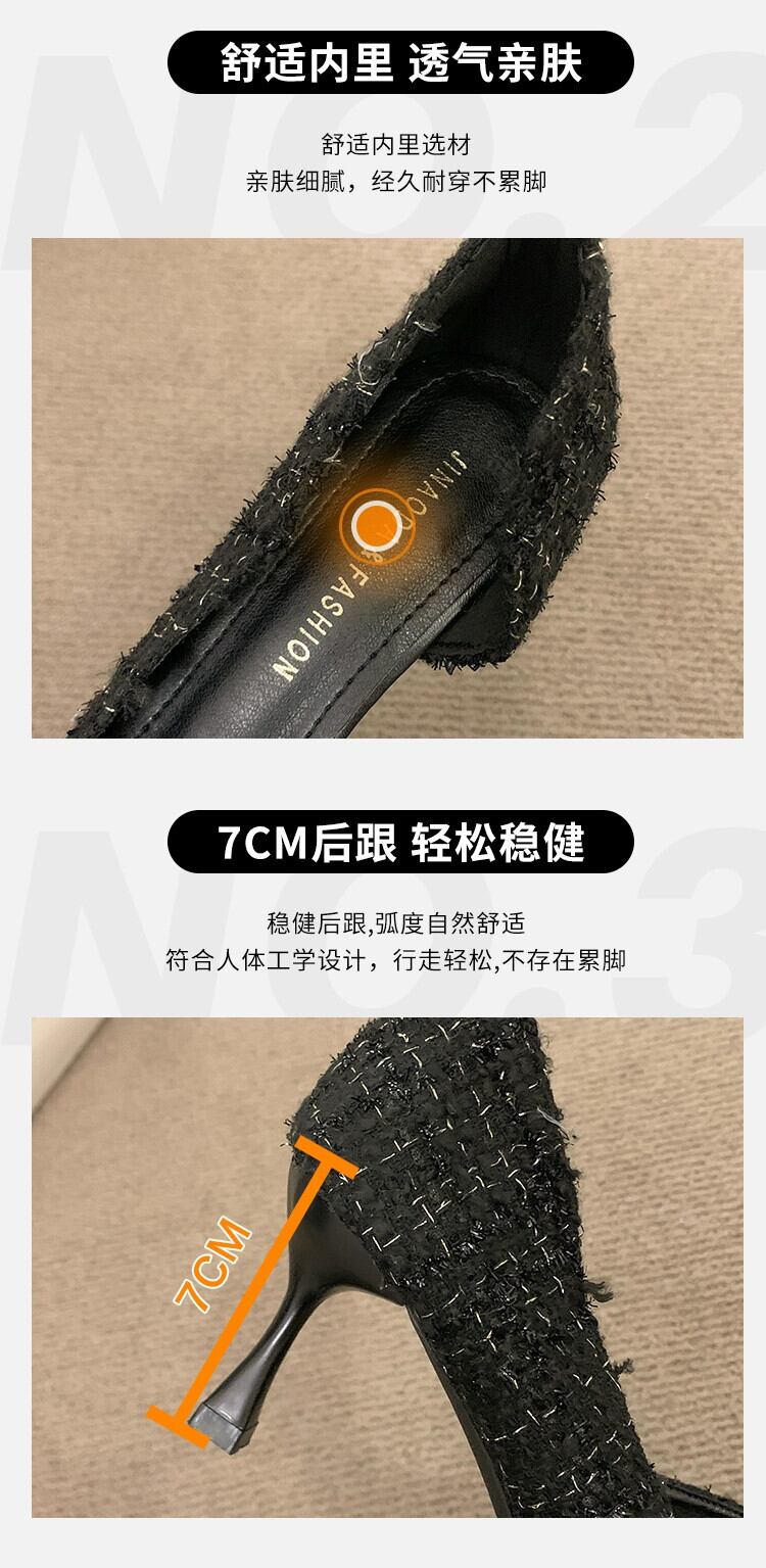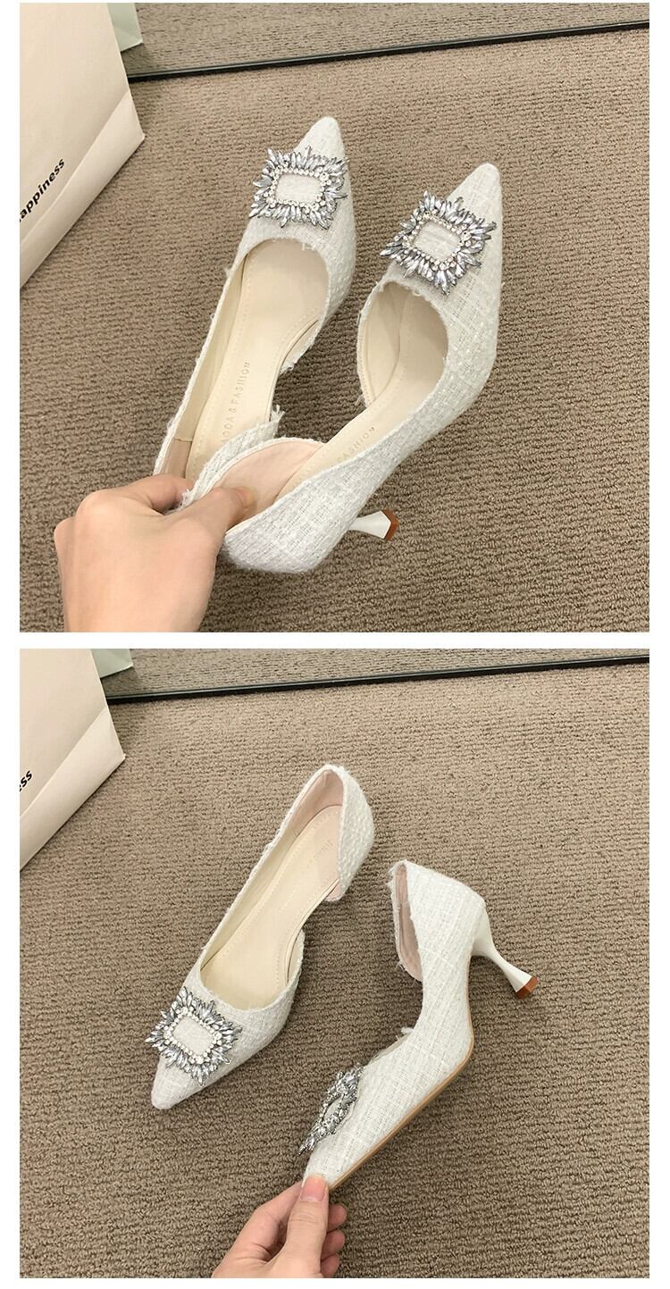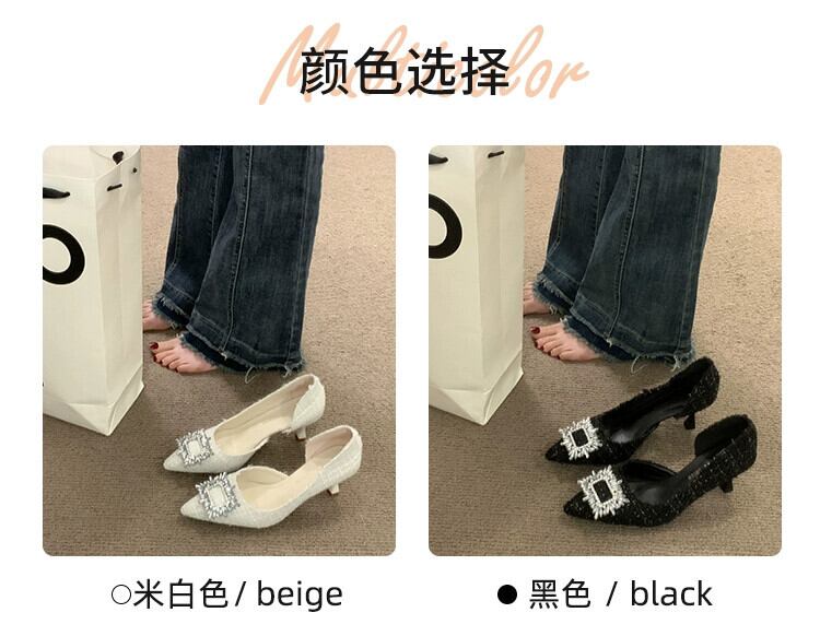 インターネットセレブシングルシューズレディース 2023 春の新ファッションオールマッチレトロアインスタイルラインストーンスタイル尖ったハイヒールトレンド 靴 スプリング 春物 jxjxf42448658899