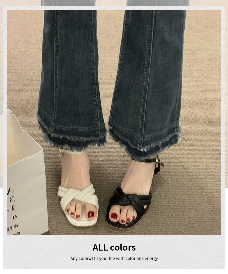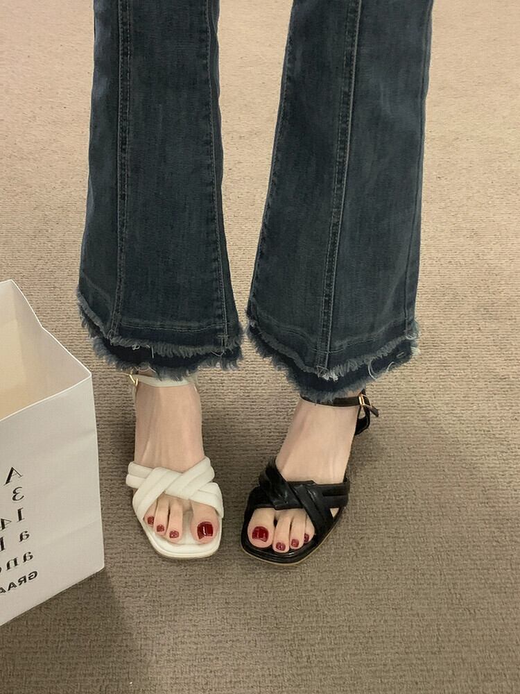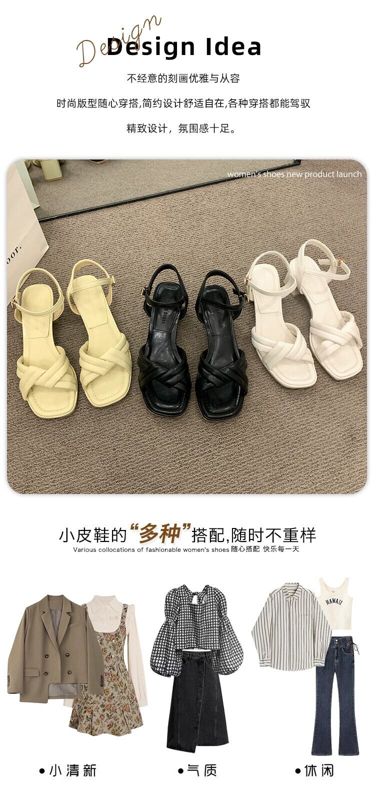 Jiabu フェイクサンダル女性の 2023 春の新ファッション優しいレトロ太いヒール滑り止め一言ハイヒール潮 靴 シューズ スプリング 春物 スリッポン jxjxf7657318128