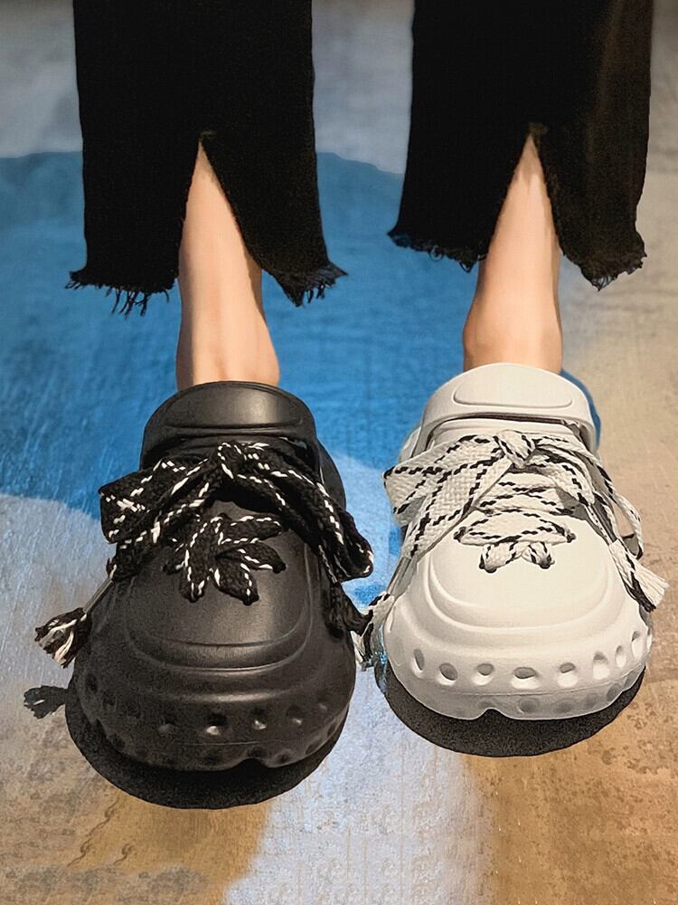 Jiabu 偽ハーフスリッパ女性の新 2023 春の新ファッションオールマッチ厚底穴靴カジュアルビーチサンダル シューズ ミュール スプリング 春物 jxjxf96487974554