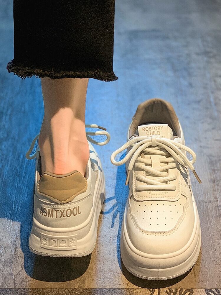 スポーツカジュアルシューズの女性の 2023 春の新ファッションオールマッチ厚底滑り止め軽くて快適な白い靴学生 ホワイト スプリング 春物 jxjxf69092740081
