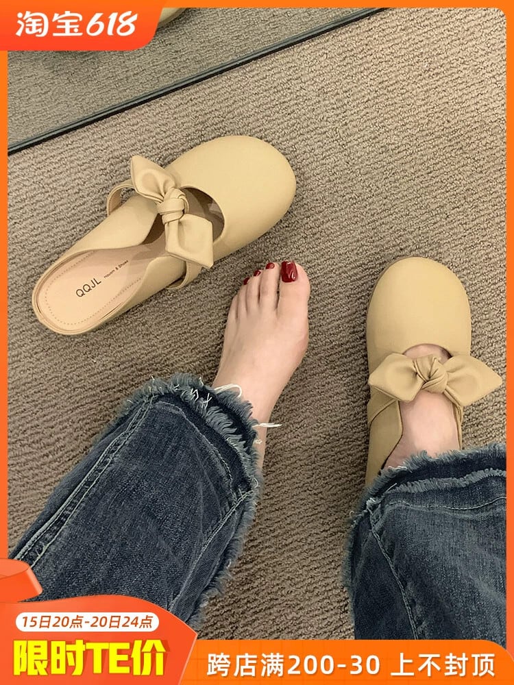 包頭レディースアウターウェア 2023 春の新ファッションオールマッチレトロ優しいフラットノンスリップ comtable サンダルとスリッパ ミュール 靴 シューズ スプリング 春物 jxjxf54331259760