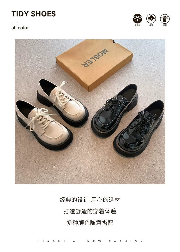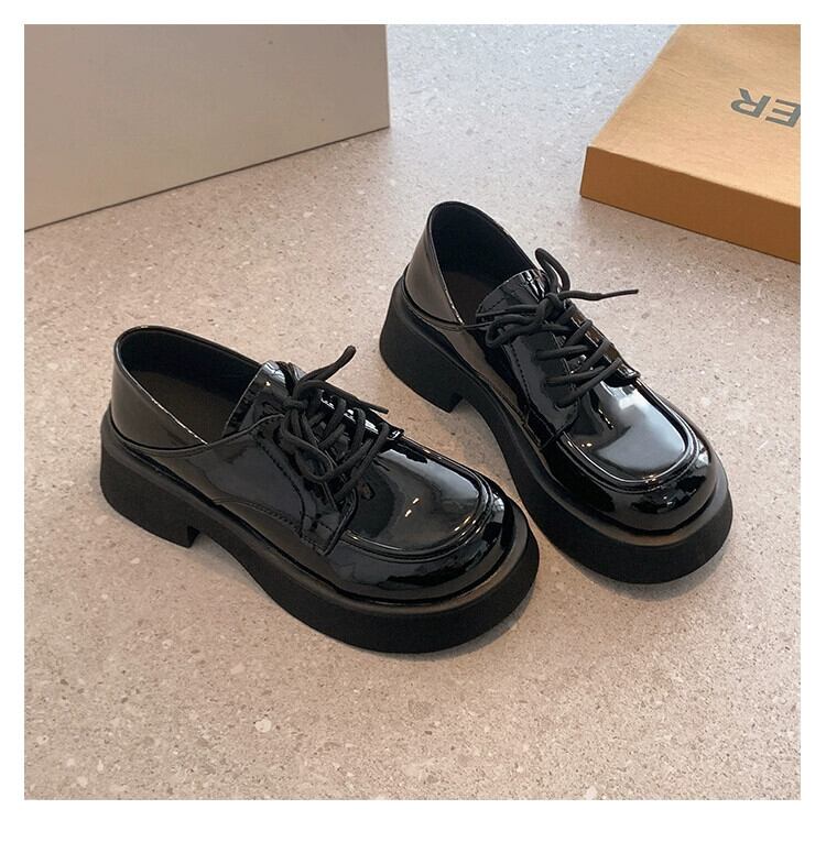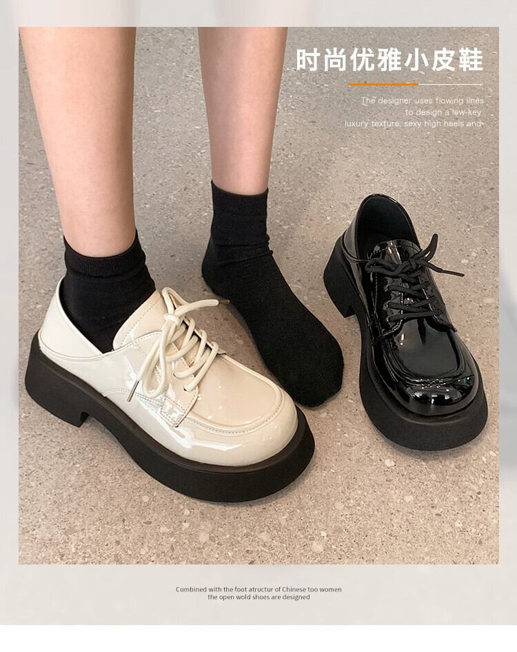 ese 小さな革靴の女性の 2023 春の新ファッションレトロオールマッチ英国スタイル厚いヒールノンスリップレースアップシューズ スプリング 春物 レザー jxjxf47089804116