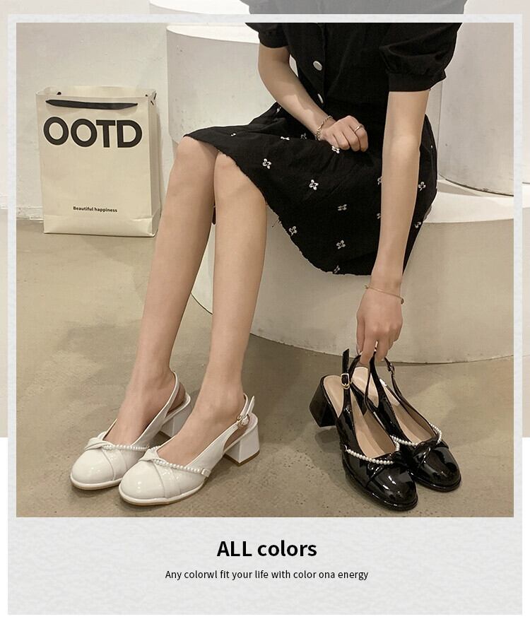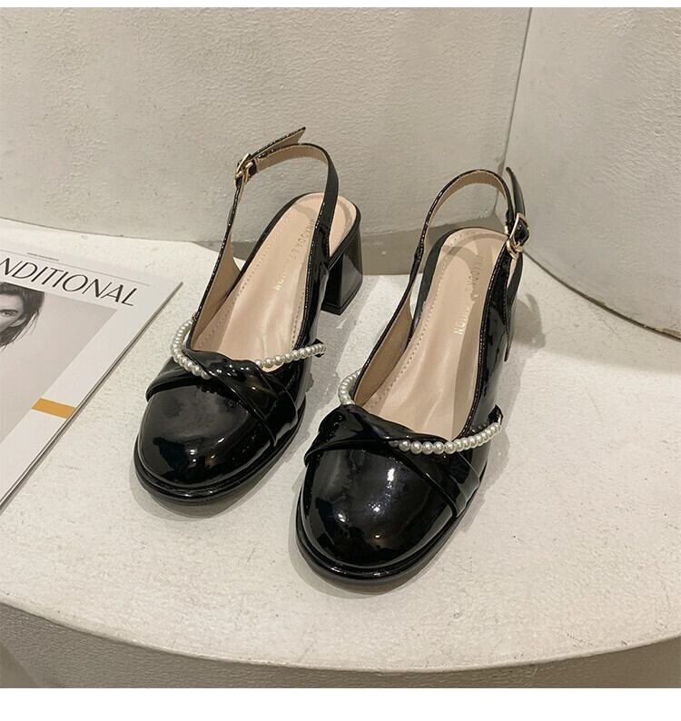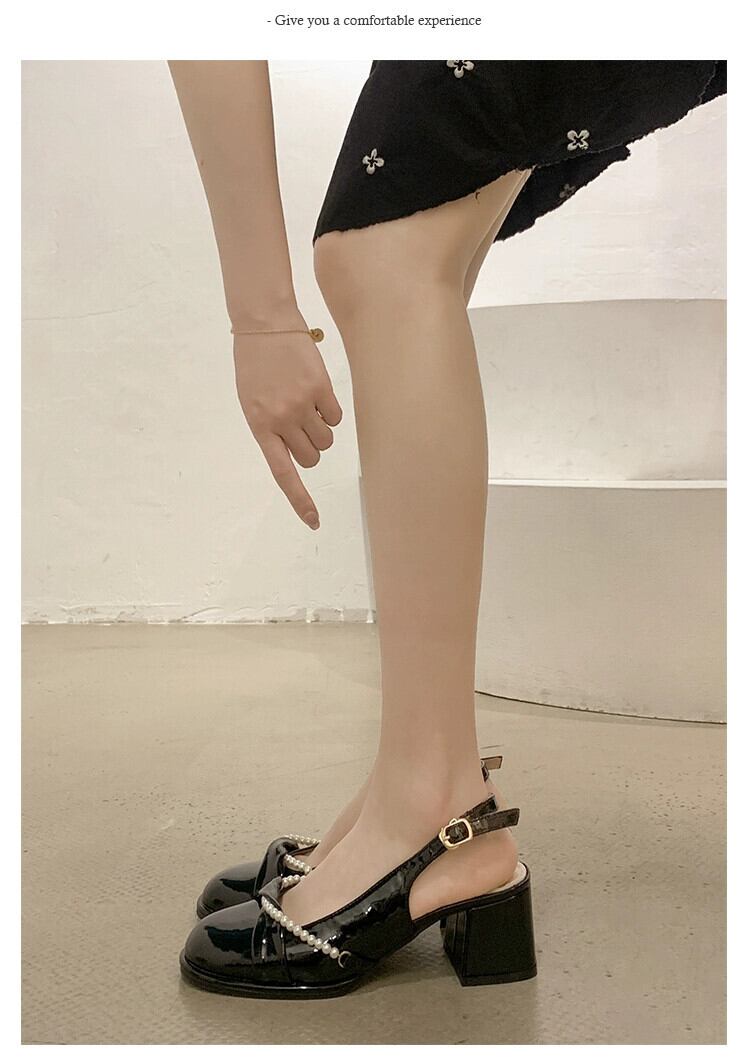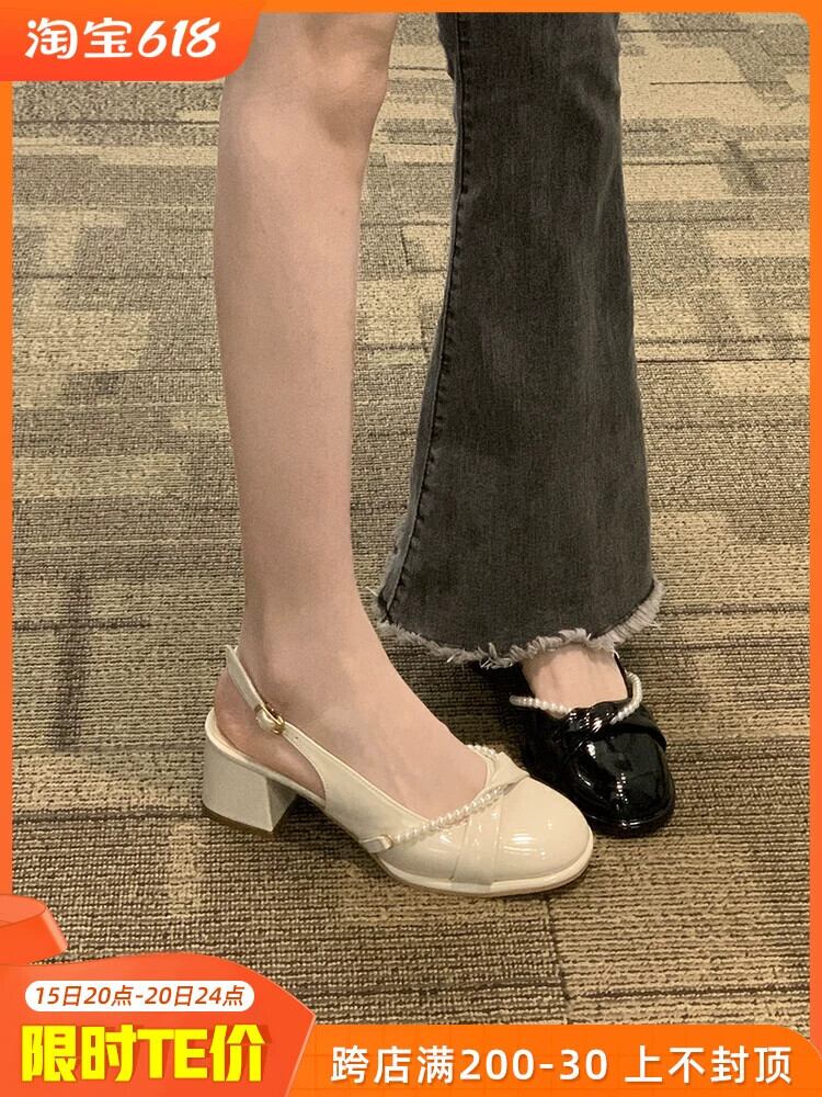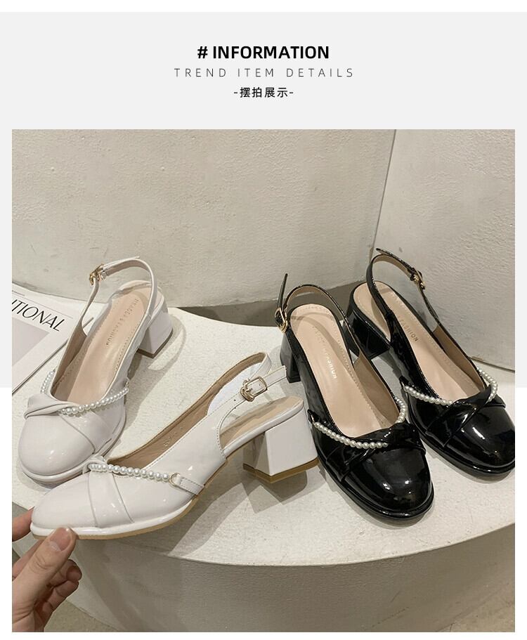 サンダル レディース 2023 春の新ファッションオールマッチレトロパールチャンキーヒール気質セレブハイヒール包頭 靴 シューズ スプリング 春物 真珠 jxjxf34874543536