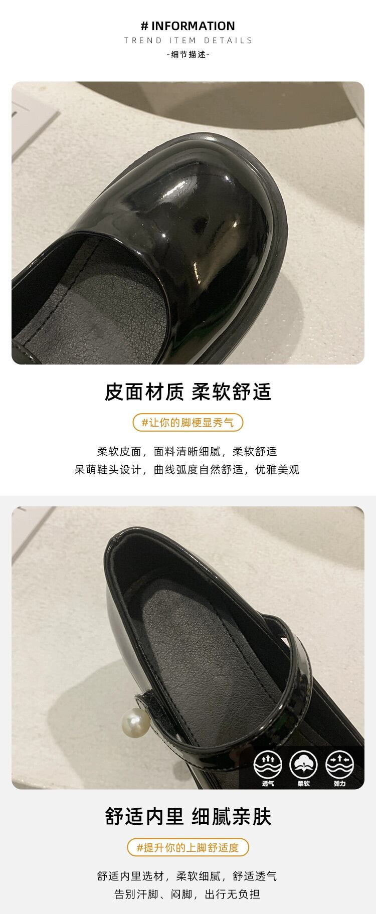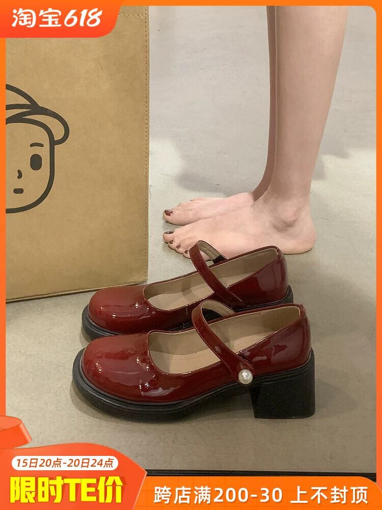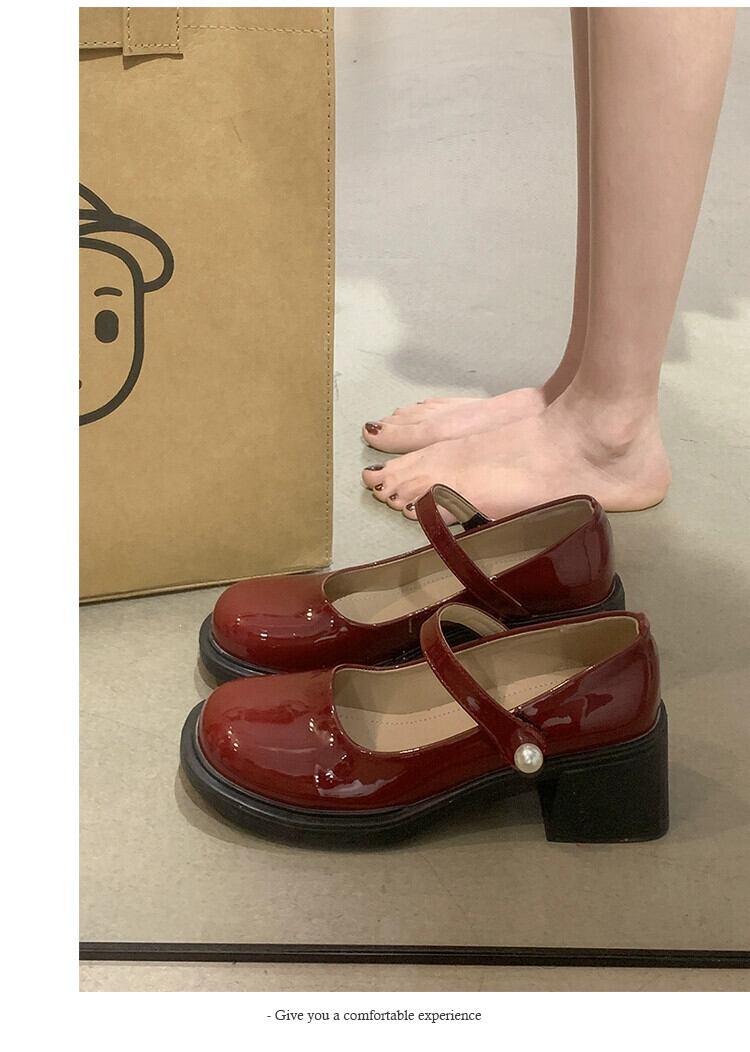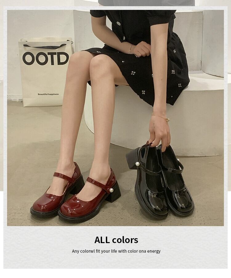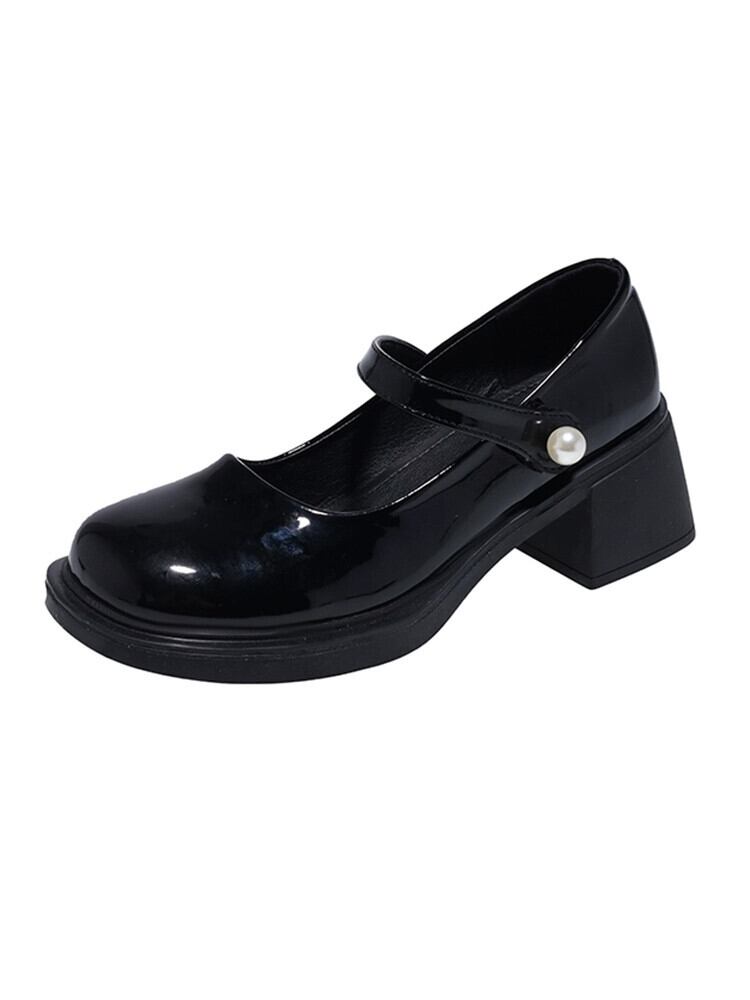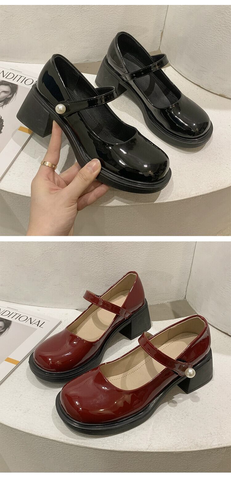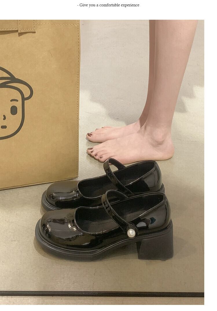 レトロメリージェーンシューズ女性の 2023 春の新スタイルパールベルクロラウンドトゥ浅い口厚いヒール小さな革靴 スプリング 春物 ラウンドトー レザー 真珠 jxjxf58325540017