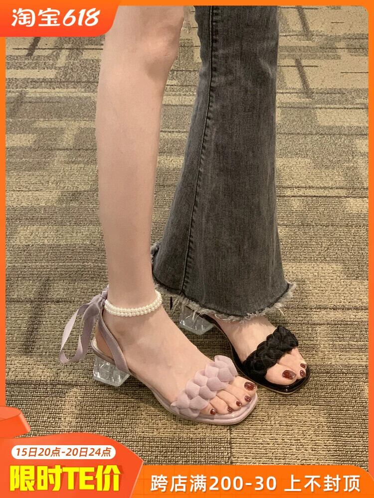 サンダルの女性のスカート 2023 春の新ファッションオールマッチパールレースフェアリースタイルローマンシューズトレンド 靴 スプリング 春物 真珠 jxjxf38267798254