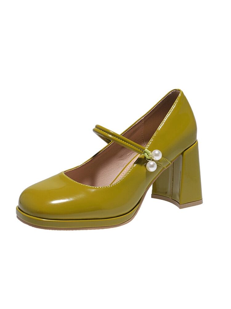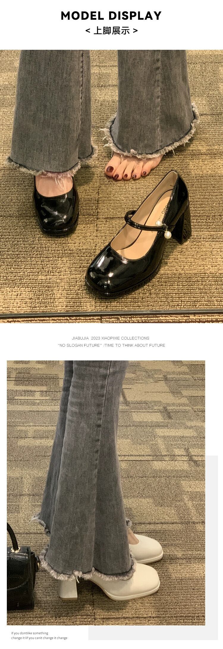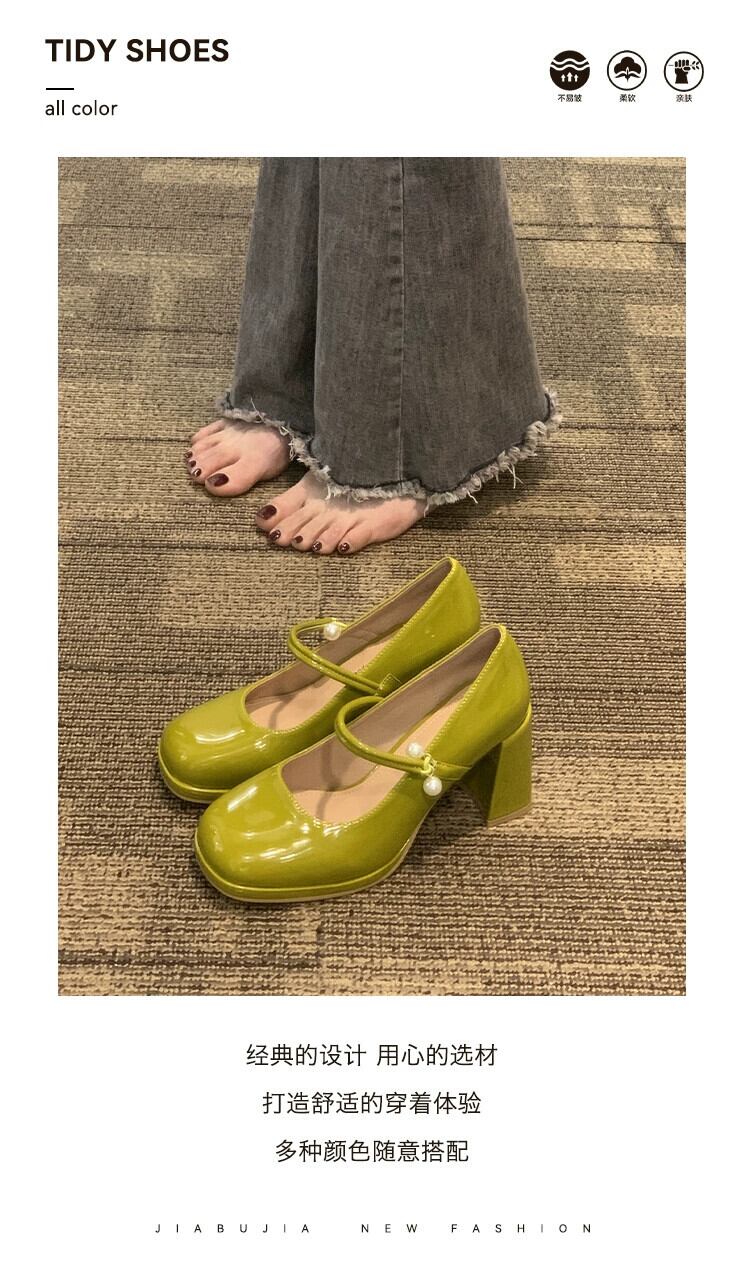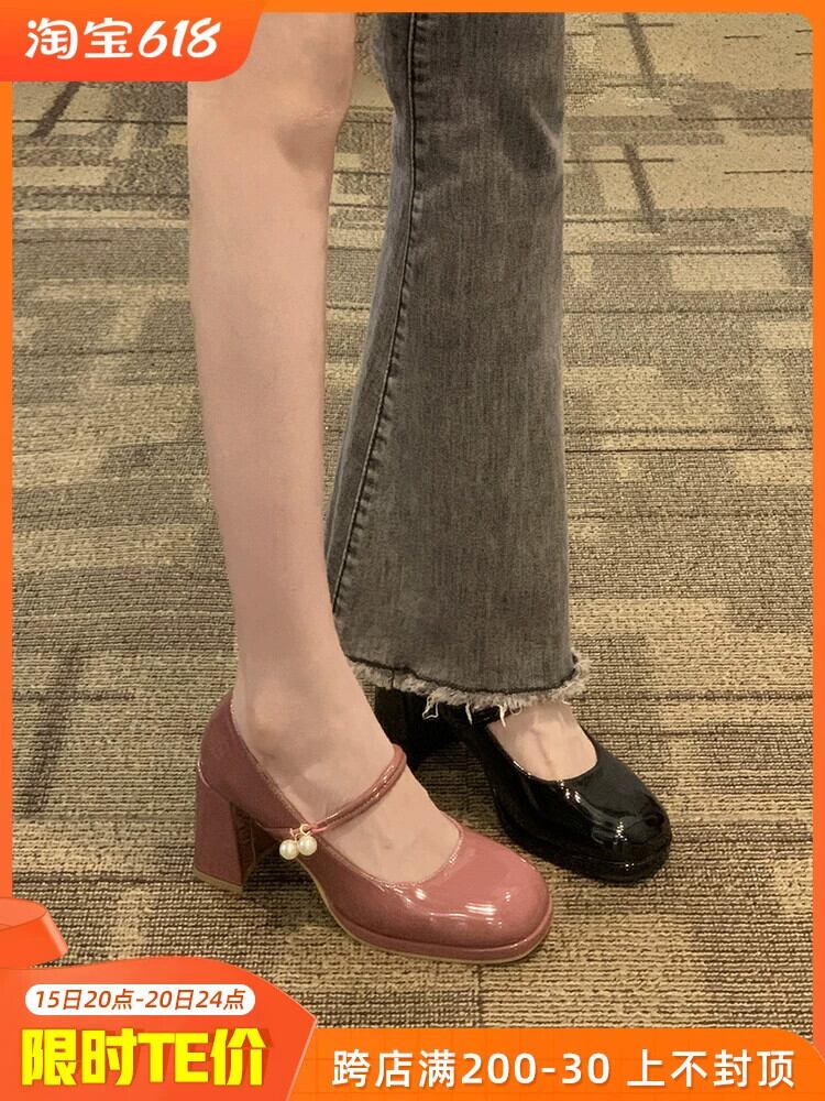 ネットセレブのシングルシューズの女性の 2023 春の新ファッションオールマッチレトロパール厚いヒールノンスリップ気質メリージェーンシューズ 靴 スプリング 春物 真珠 jxjxf7876844348
