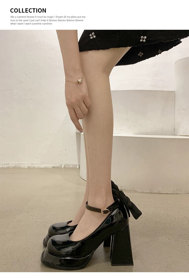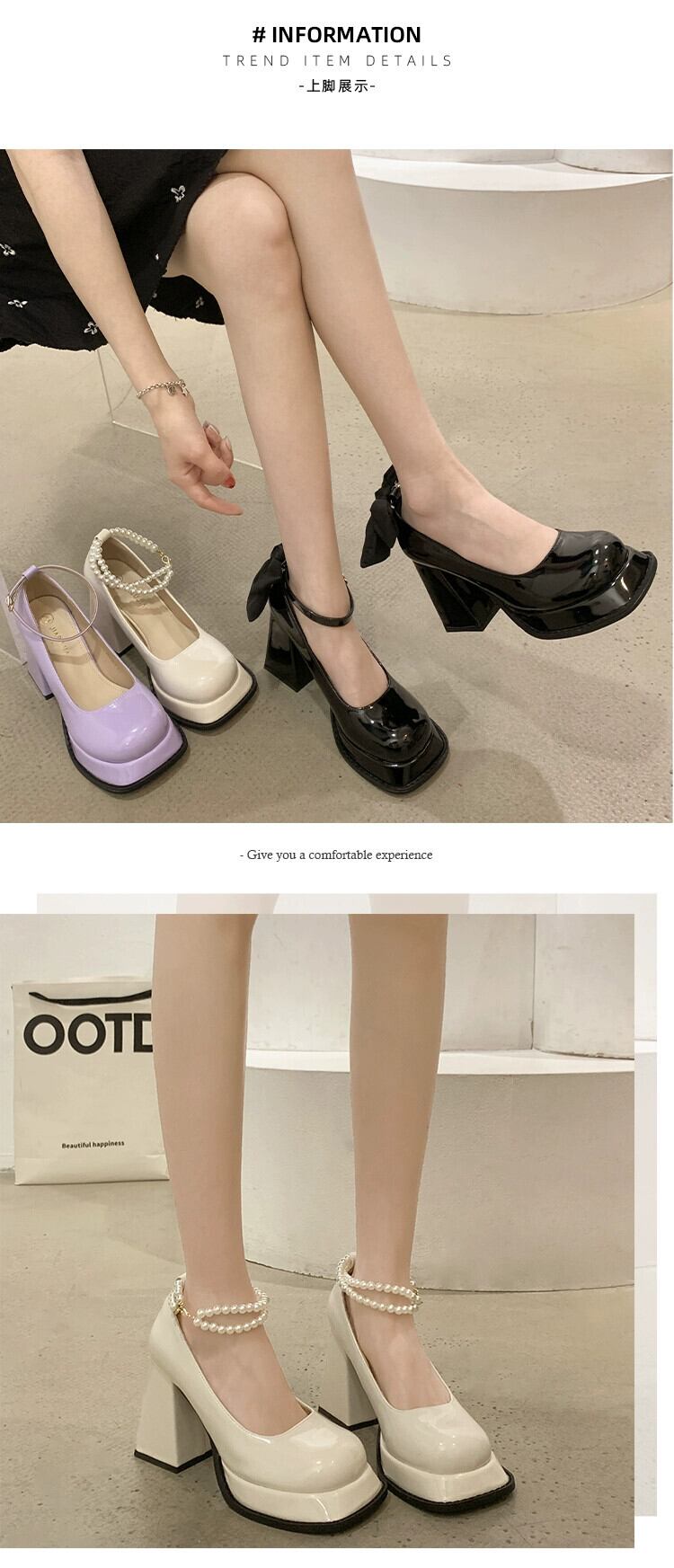 Jiabu 偽シングルシューズ女性の 2023 春の新ファッションオールマッチパールリボンハイヒールスタイルメリージェーンシューズ 靴 スプリング 春物 真珠 jxjxf96507345916