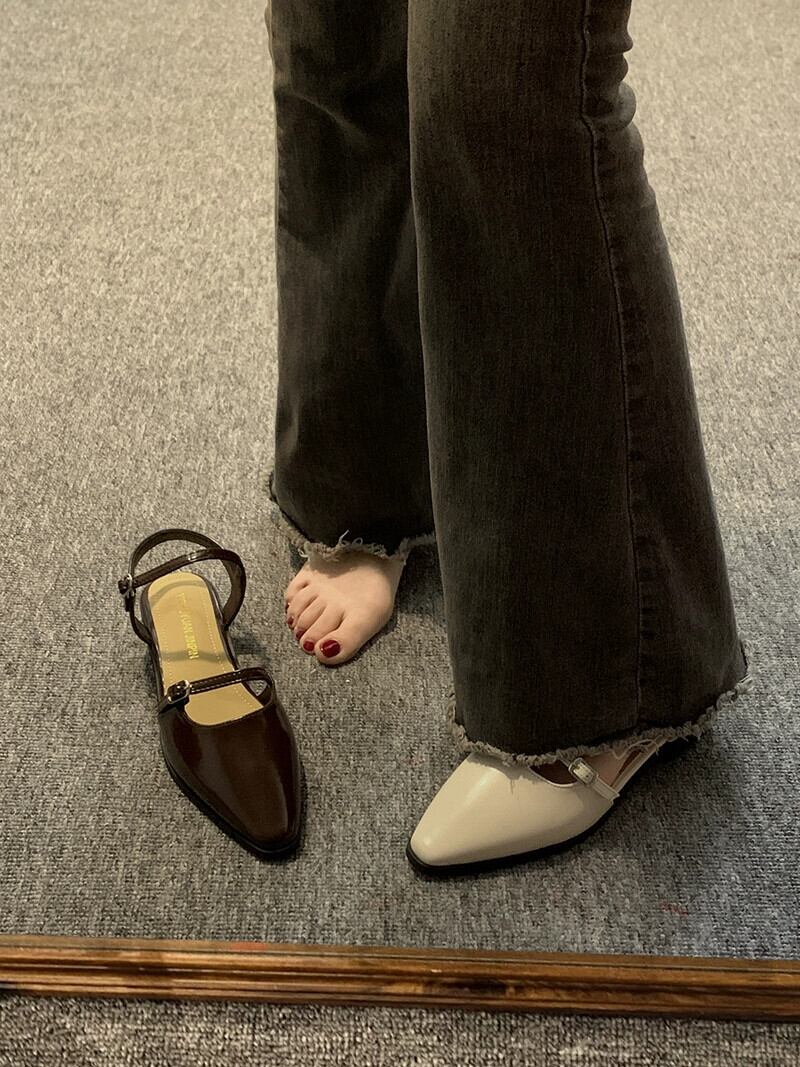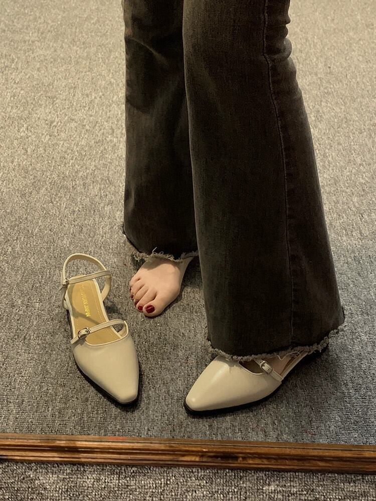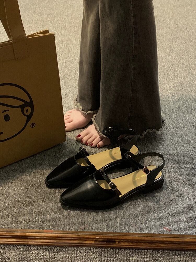 ポインテッドトゥサンダルレディース 2023 春の新作ファッションオールマッチフレンチレトロな気質黒のソフトソールの小さな革靴 シューズ ブラック スプリング 春物 レザー jxjxf5803536224