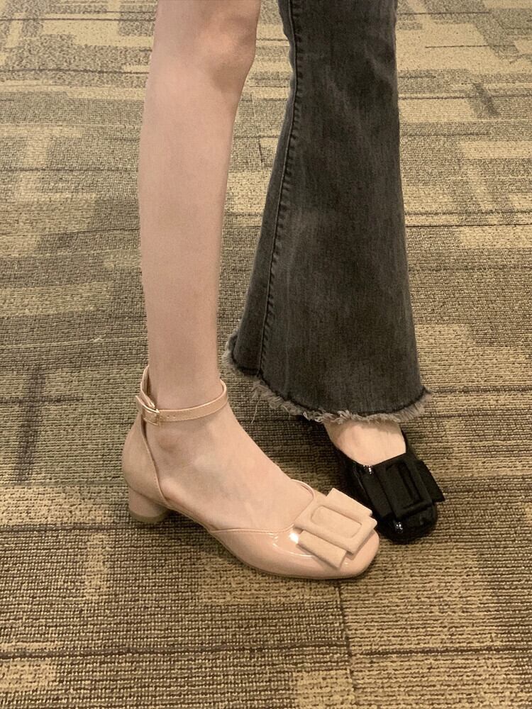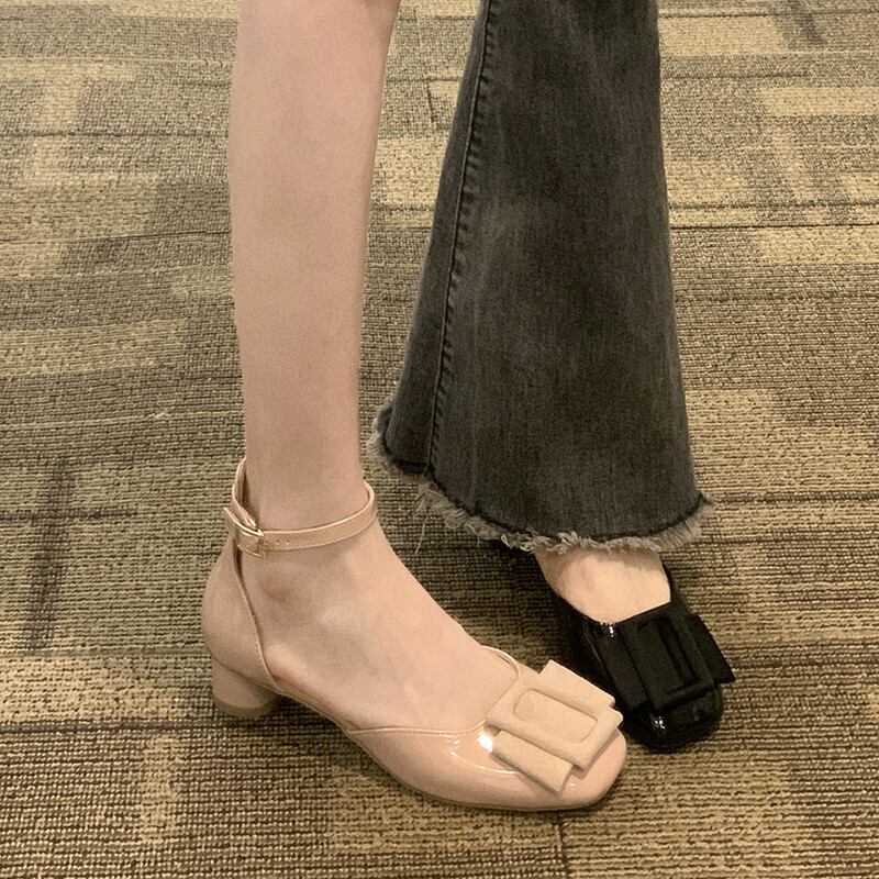 太いヒールシングルシューズレディース 2023 春の新ファッションオールマッチフレンチレトロ気質メアリージェーン小さな革靴トレンド スプリング 春物 レザー jxjxf9346770121