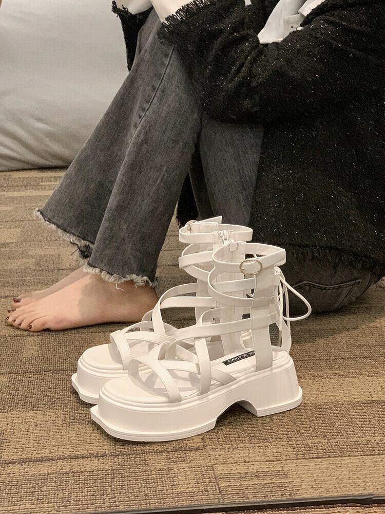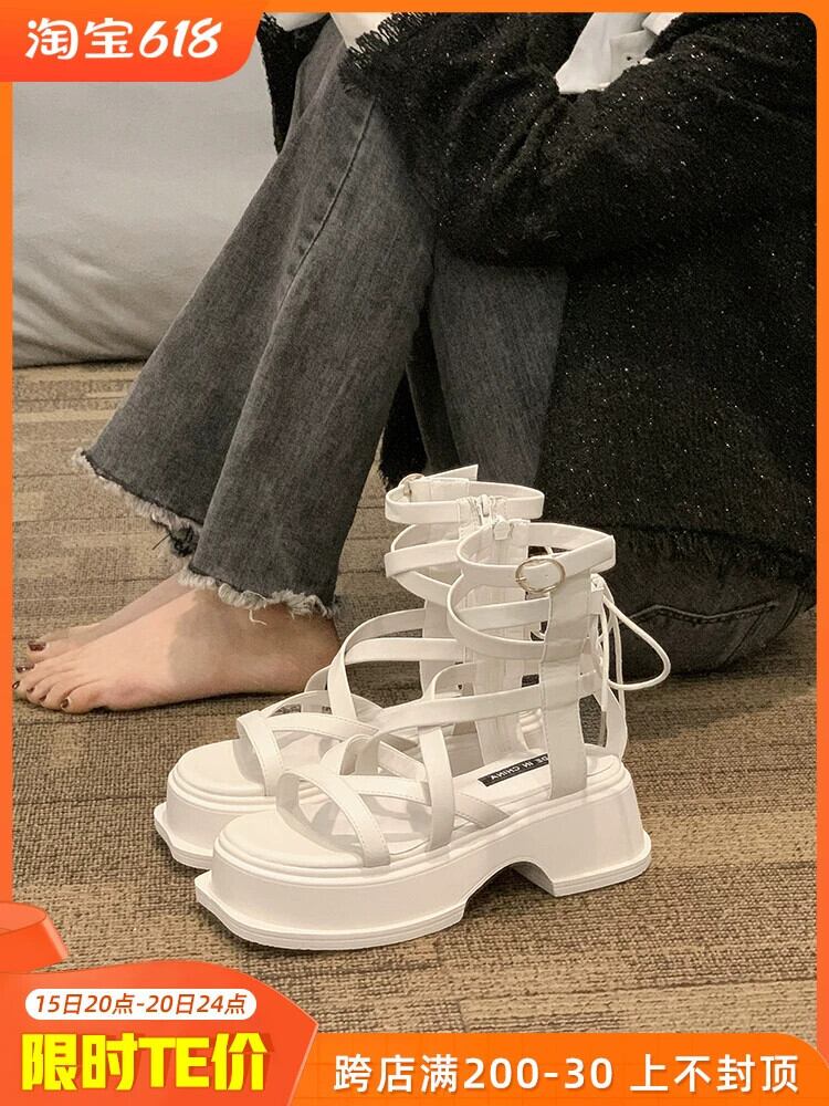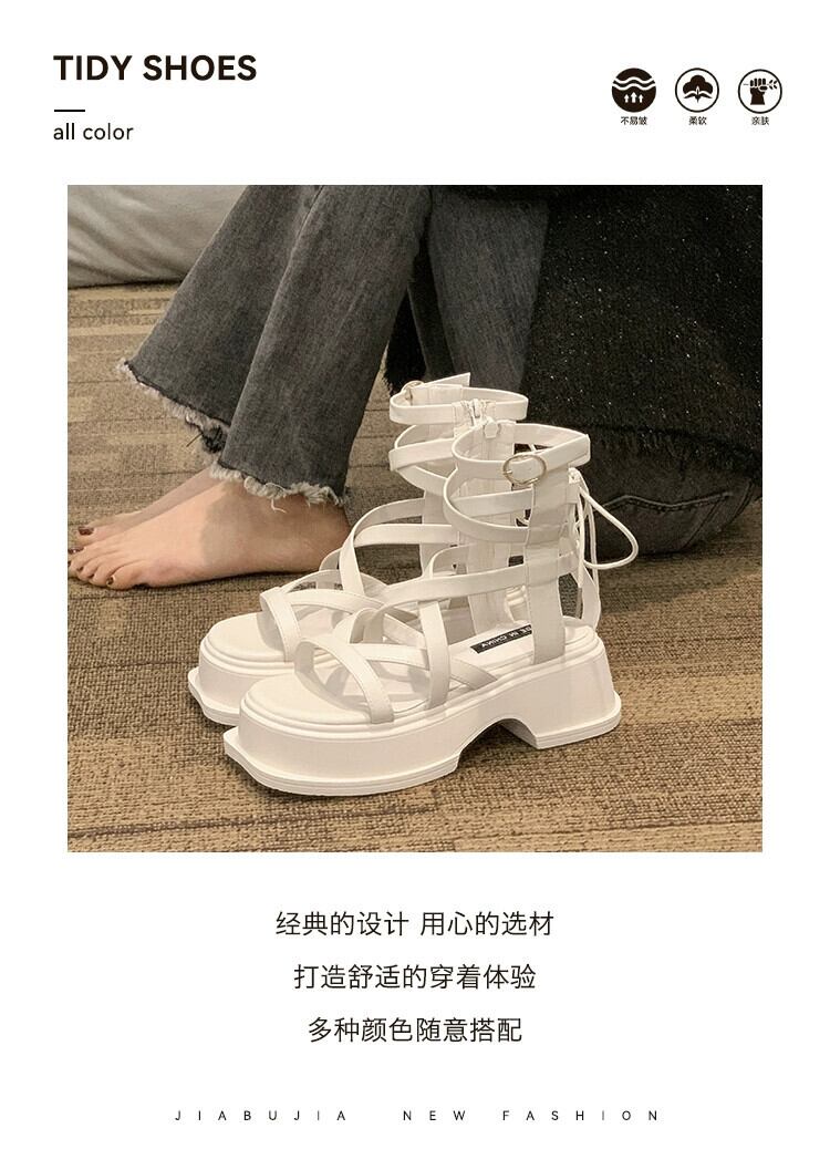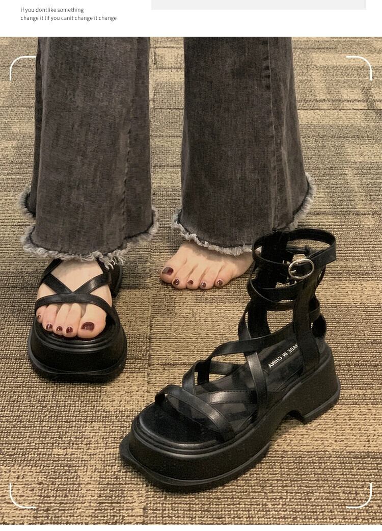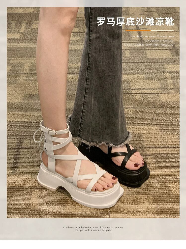 ローマサンダル女性の 2023 春の新ファッションオールマッチネットレッドレトロシーサイドカジュアルチャンキーヒールビーチシューズ 靴 スプリング 春物 jxjxf36792816771