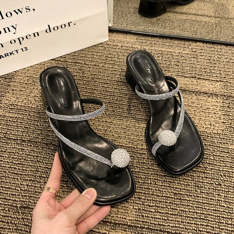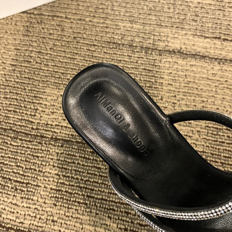 セットトゥスリッパ女性の2023年春のお出かけ新しいファッションオールマッチフランスの気質ラインストーン厚いヒールサンダルとスリッパトレンド ミュール 靴 シューズ スプリング 春物 jxjxf61053443296