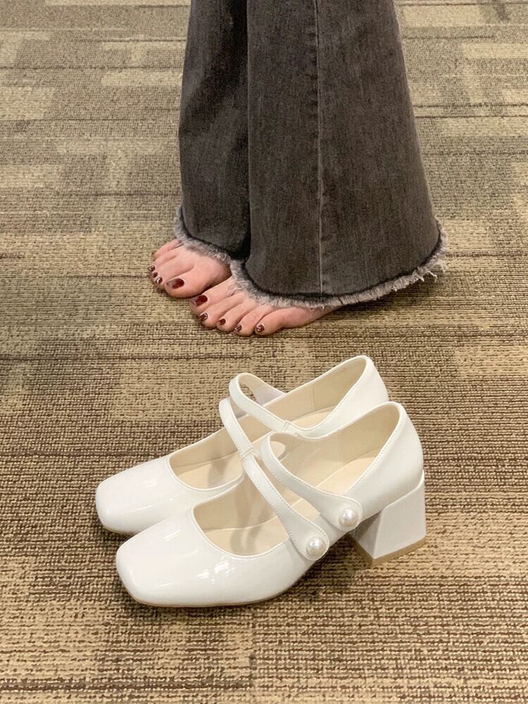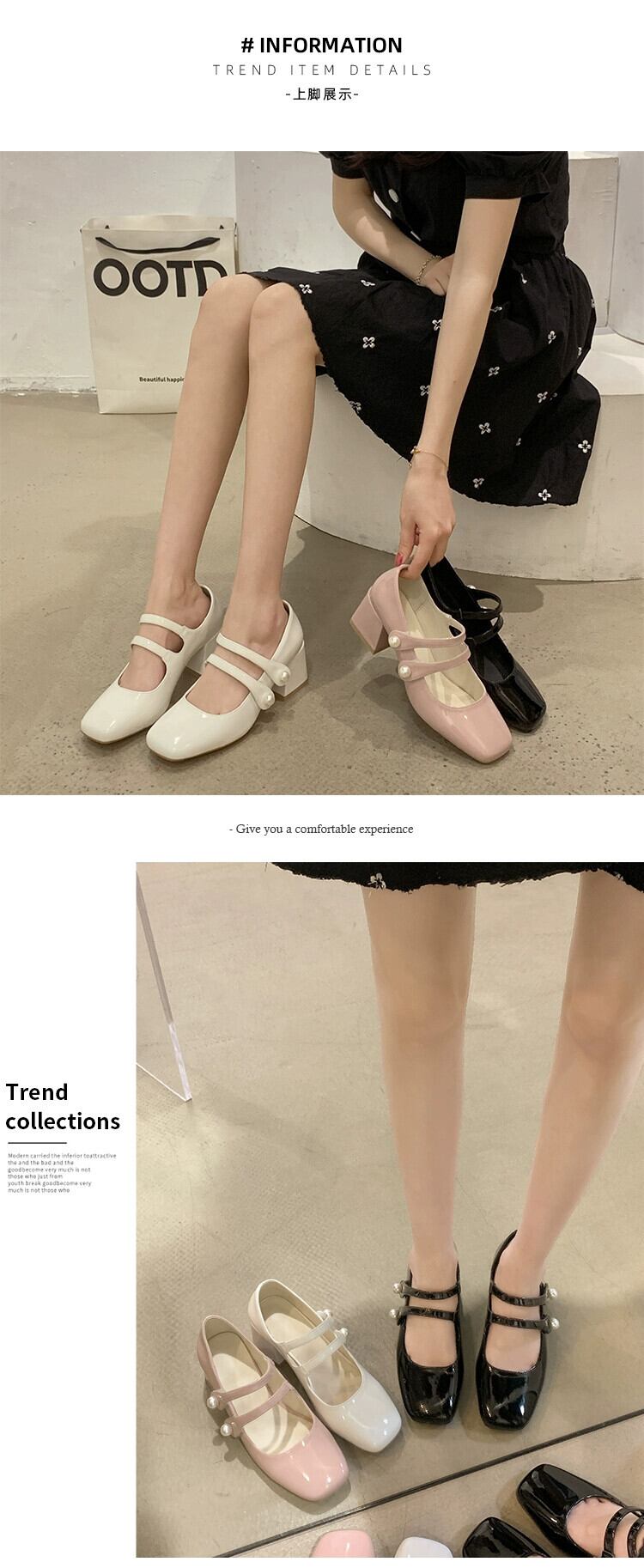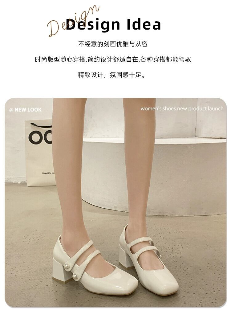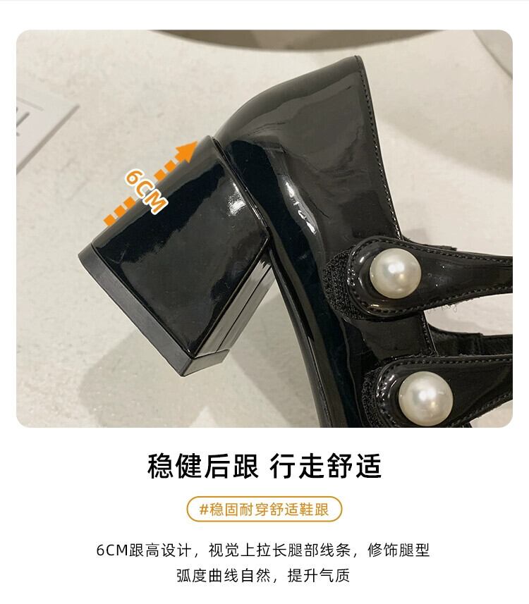 シングルシューズの女性の 2023 春の新ファッションオールマッチフレンチレトロパール浅口チャンキーヒールメリージェーン革靴 スプリング 春物 レザー 真珠 jxjxf77630777629