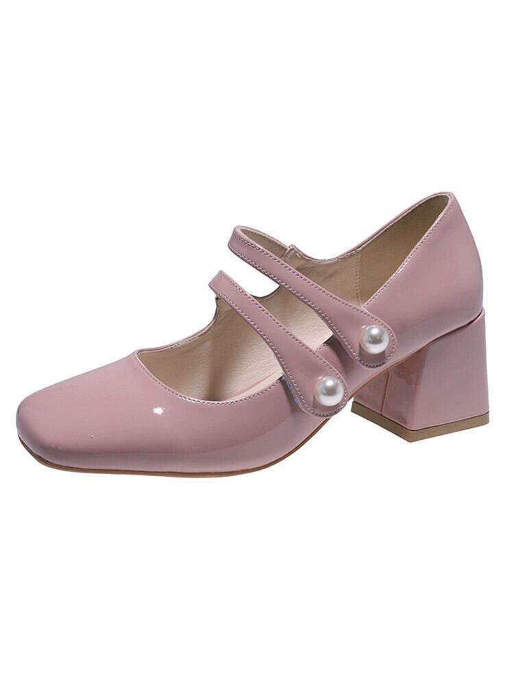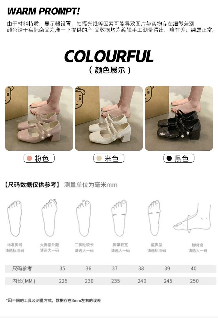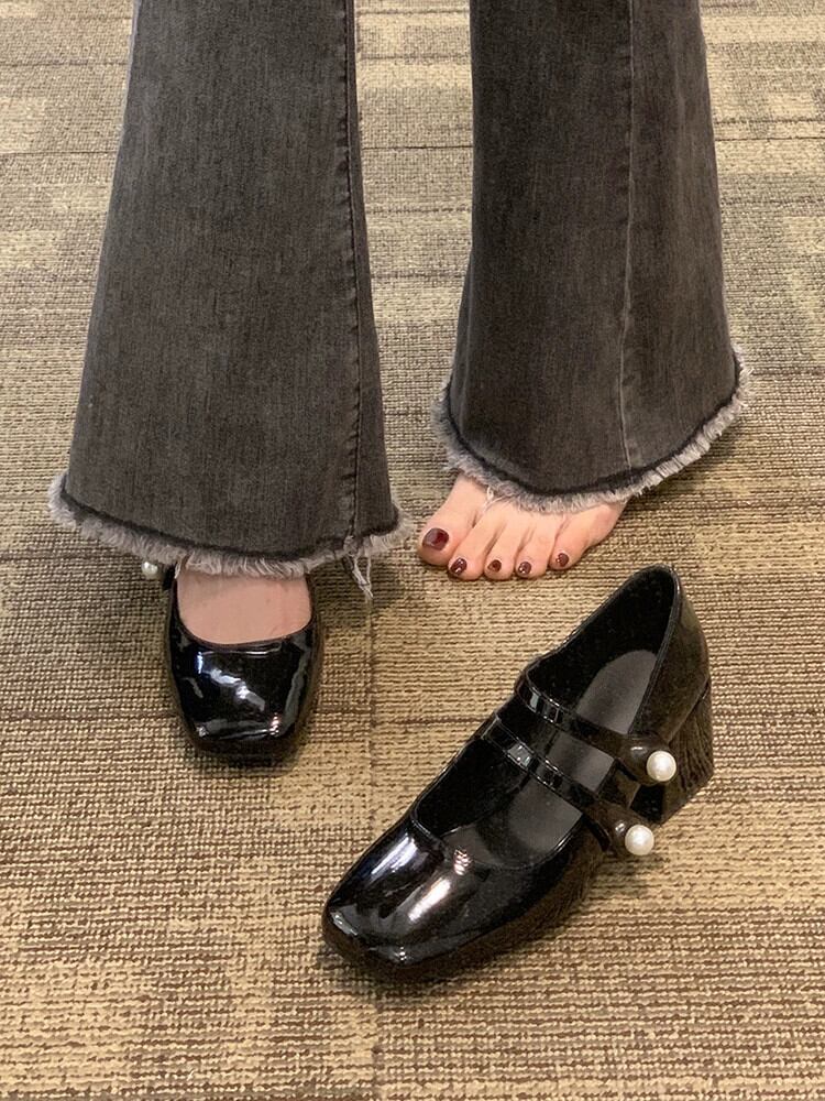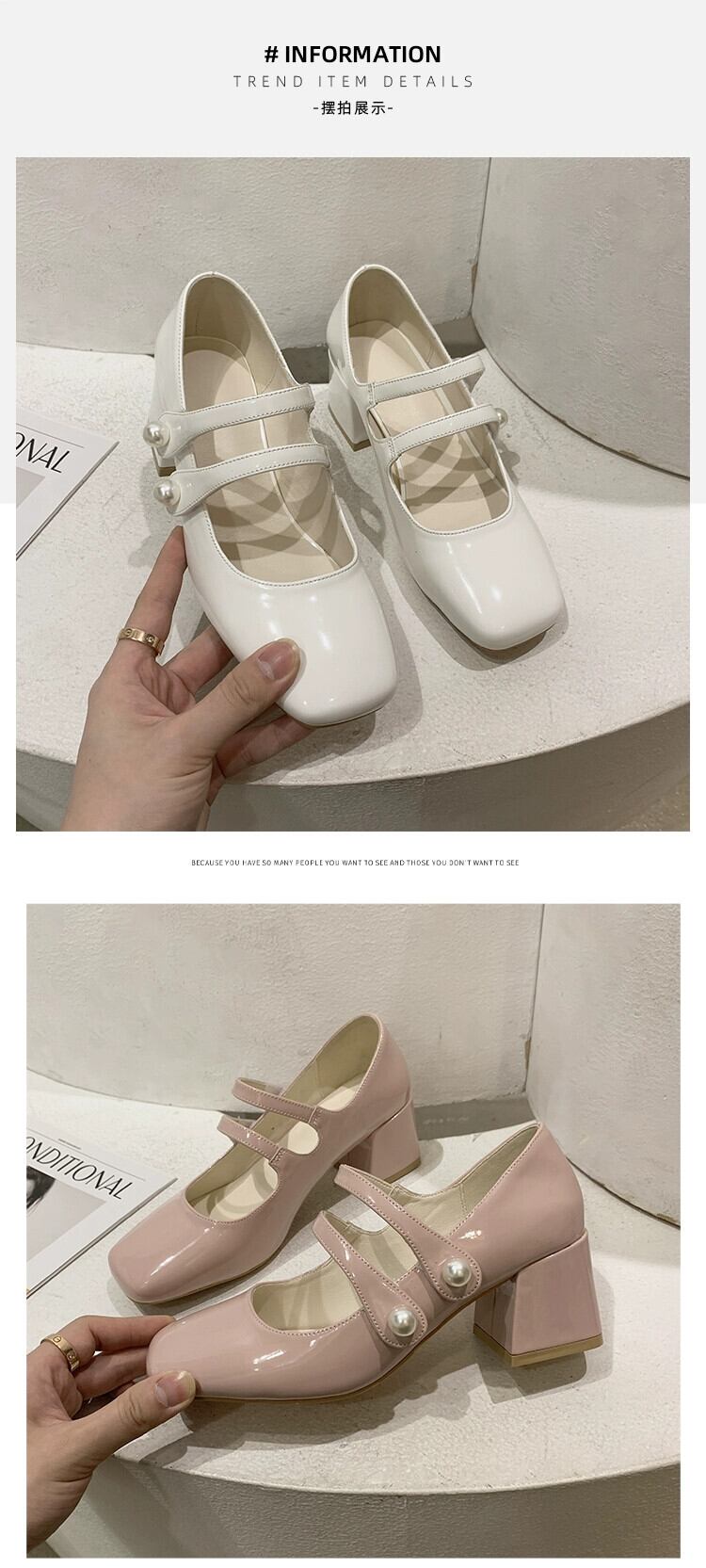 シングルシューズの女性の 2023 春の新ファッションオールマッチフレンチレトロパール浅口チャンキーヒールメリージェーン革靴 スプリング 春物 レザー 真珠 jxjxf77630777629