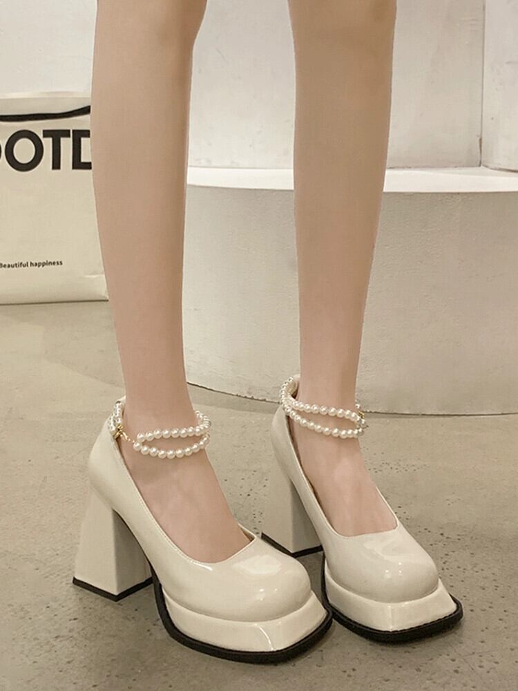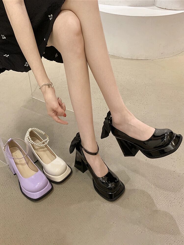メリージェーンシューズレディース 2023 春の新作ファッションオールマッチフレンチパールリボンスカートハイヒールシューズトレンディ 靴 スプリング 春物 真珠 jxjxf929150214