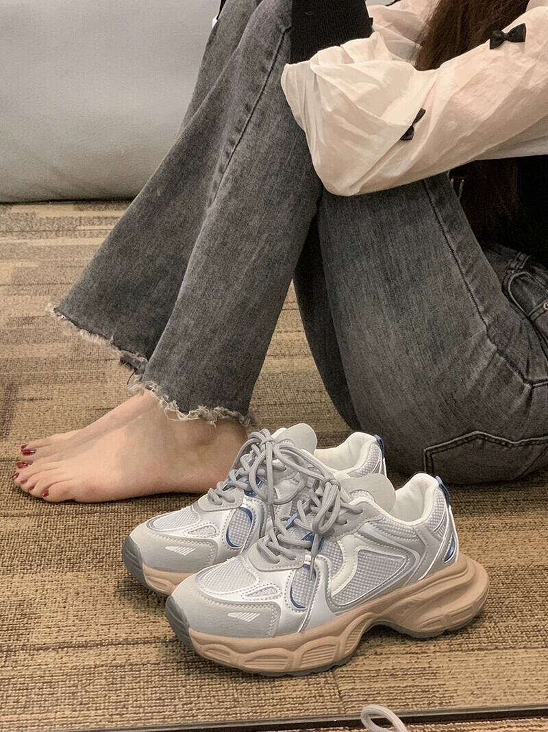 Jiabu 偽古い靴スポーツシューズの女性の春と秋のスタイル 2023 春の新オールマッチ厚底高靴小さな白い靴 ホワイト スプリング 春物 オータム 秋物 jxjxf33177291444